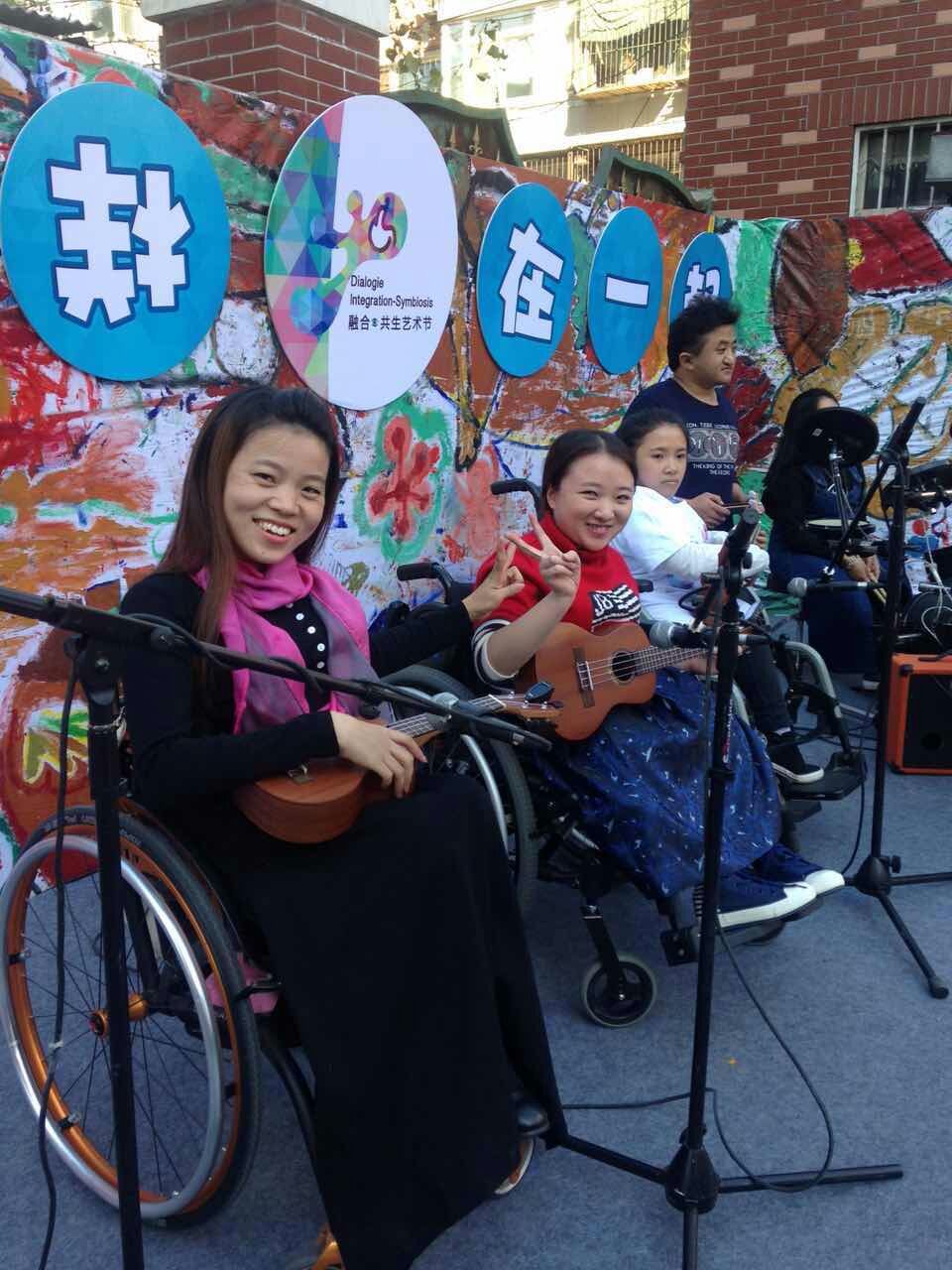 十年间,乐队的专业度有了显著提升,乐器的配置也“鸟枪换炮”。身为“元老”的崔莹,克服了成骨不全症带来的身体障碍,几经更迭,终于将手中的尤克里里换成了梦想中的吉他。“和尤克里里相比,吉他更宽、更重,演奏时需要长时间压在腿上,我的手指太软,很难按住大吉他的琴弦,力气大点又容易扭伤。”崔莹说,她先把尤克里里换成了30寸的吉他,用这把效果有限的30寸吉他培养了信心、熟悉了排练之后,才正式换成了36寸的吉他。从一开始要在腿上放充气软垫缓冲,用尽全身力气按弦,到现在可以从容完成长达两个多小时的演出,这种幸福感对于崔莹来说,真的难以言喻。