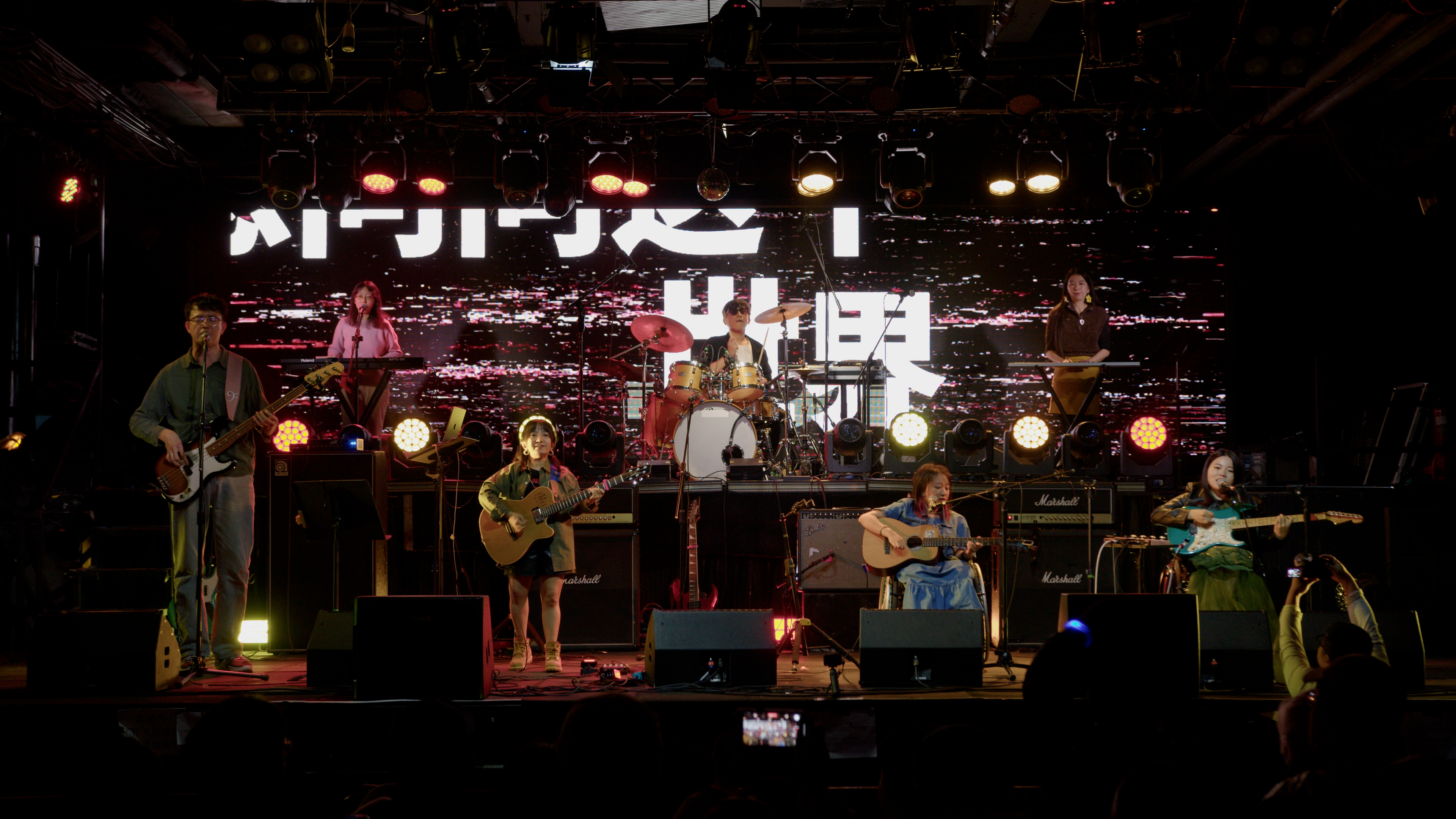 为了这场意义非凡的音乐会,7位成员筹备了大半年。每位成员都参与了音乐创作,还兼顾音乐会的大小事宜,从场地协调、舞台视觉设计到乐队周边产品制作,大家亲力亲为,耗费了不少心血。演出开始前,乐队成员们还有些忐忑,尤其是身为主唱和吉他手的崔莹。“演出之前推迟过一次,虽然前期预约了100多人,但当天天气很冷,我担心不会有太多人来。”