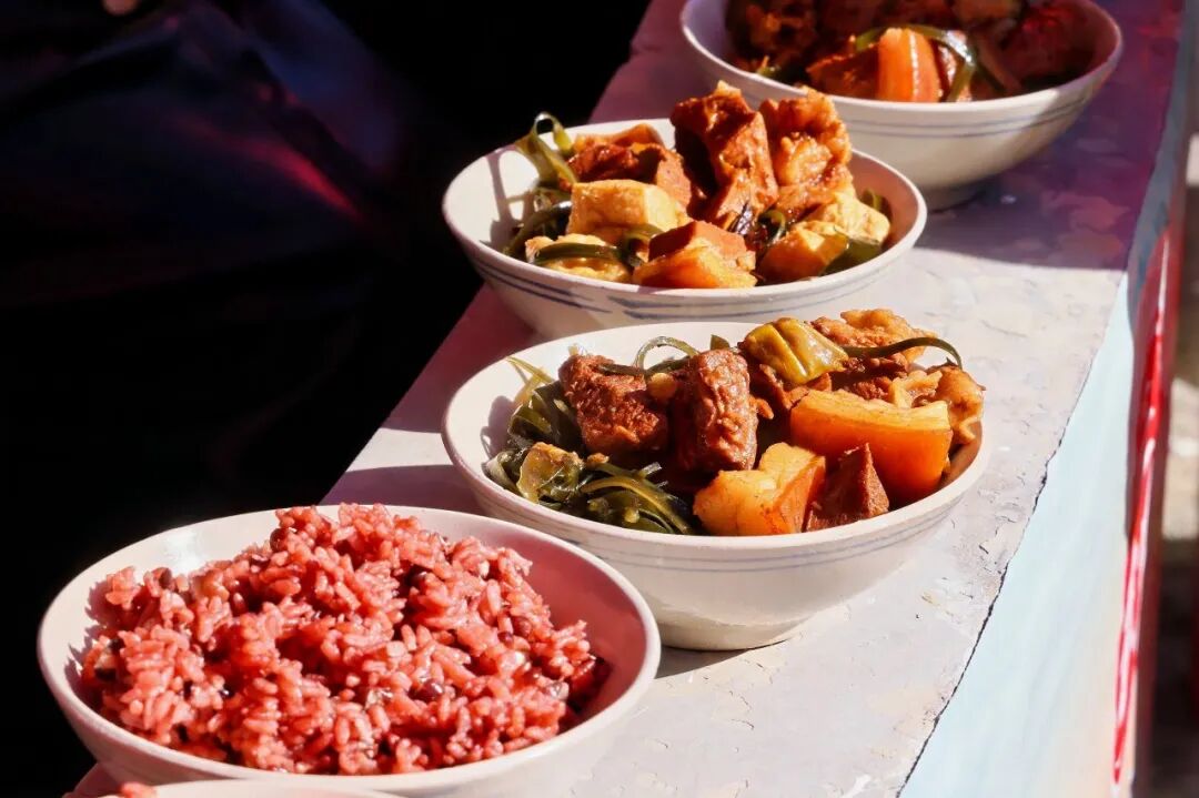 重头戏当属热气腾腾的敛巧饭。传统红豆饭配文火慢炖红烧肉,绝味天成;海带炖粉条勾起儿时回忆。每一口,都是传承百年的地道滋味。