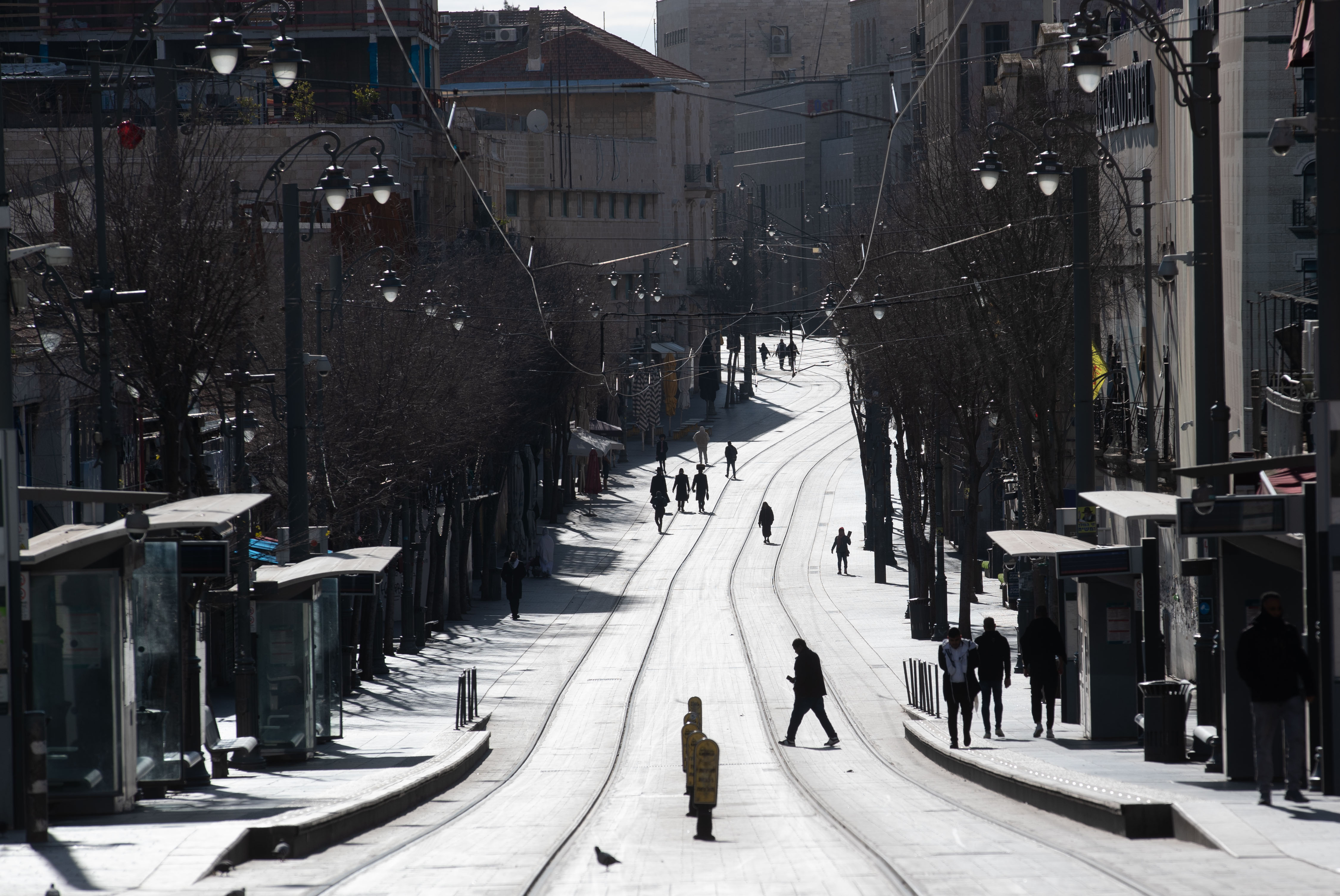 ↑这是2月28日拍摄的防空警报响起后的耶路撒冷街头。