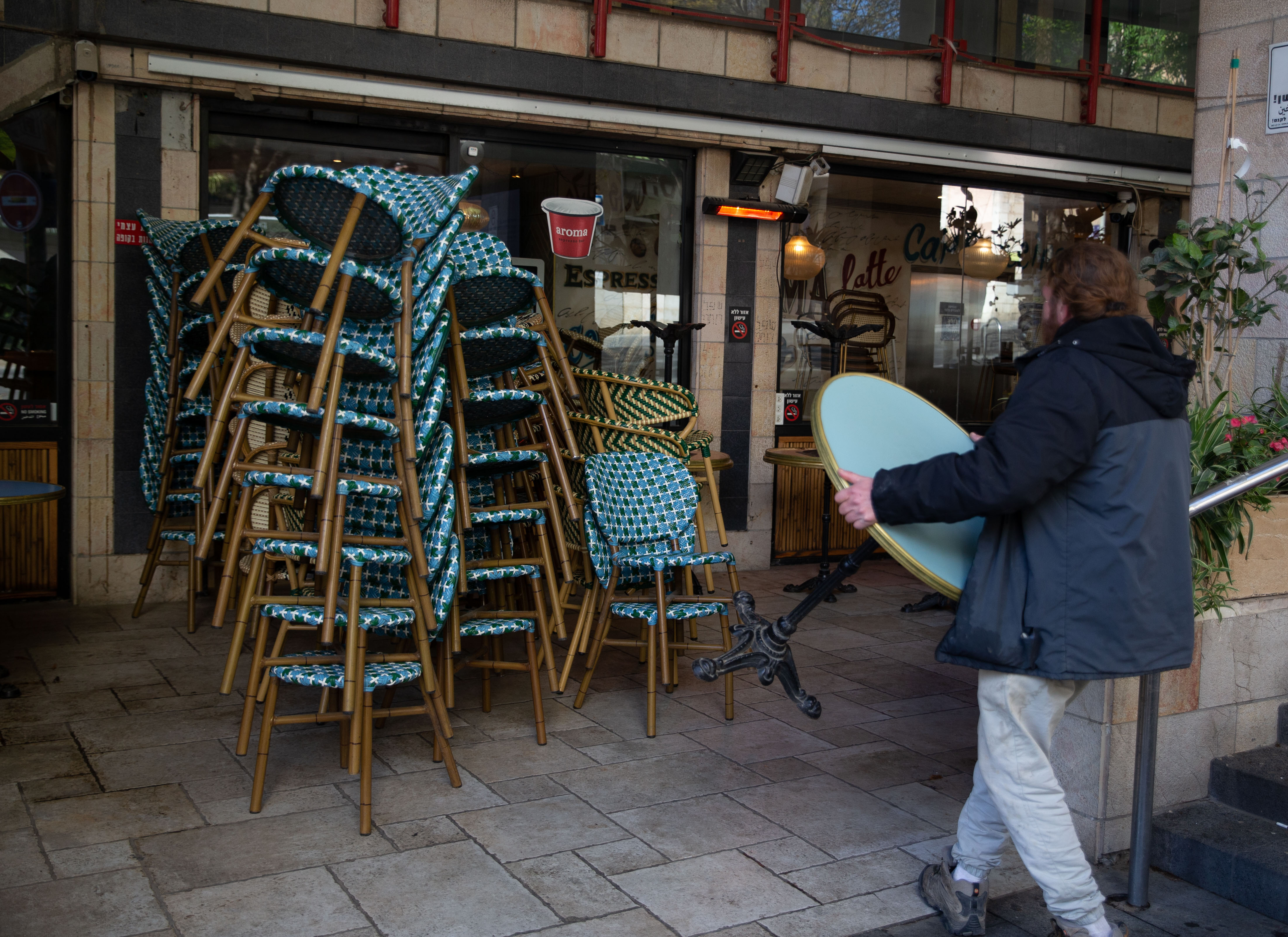 ↑2月28日,在耶路撒冷,一处咖啡馆在防空预警响起后关闭。