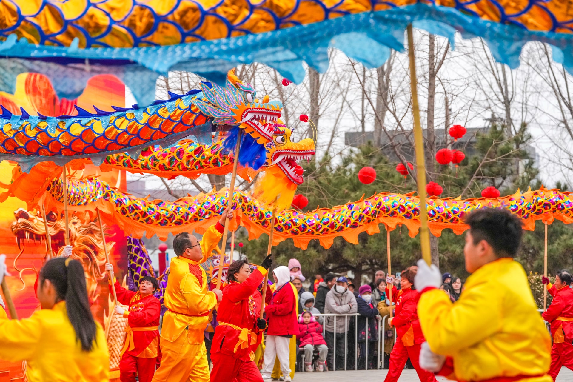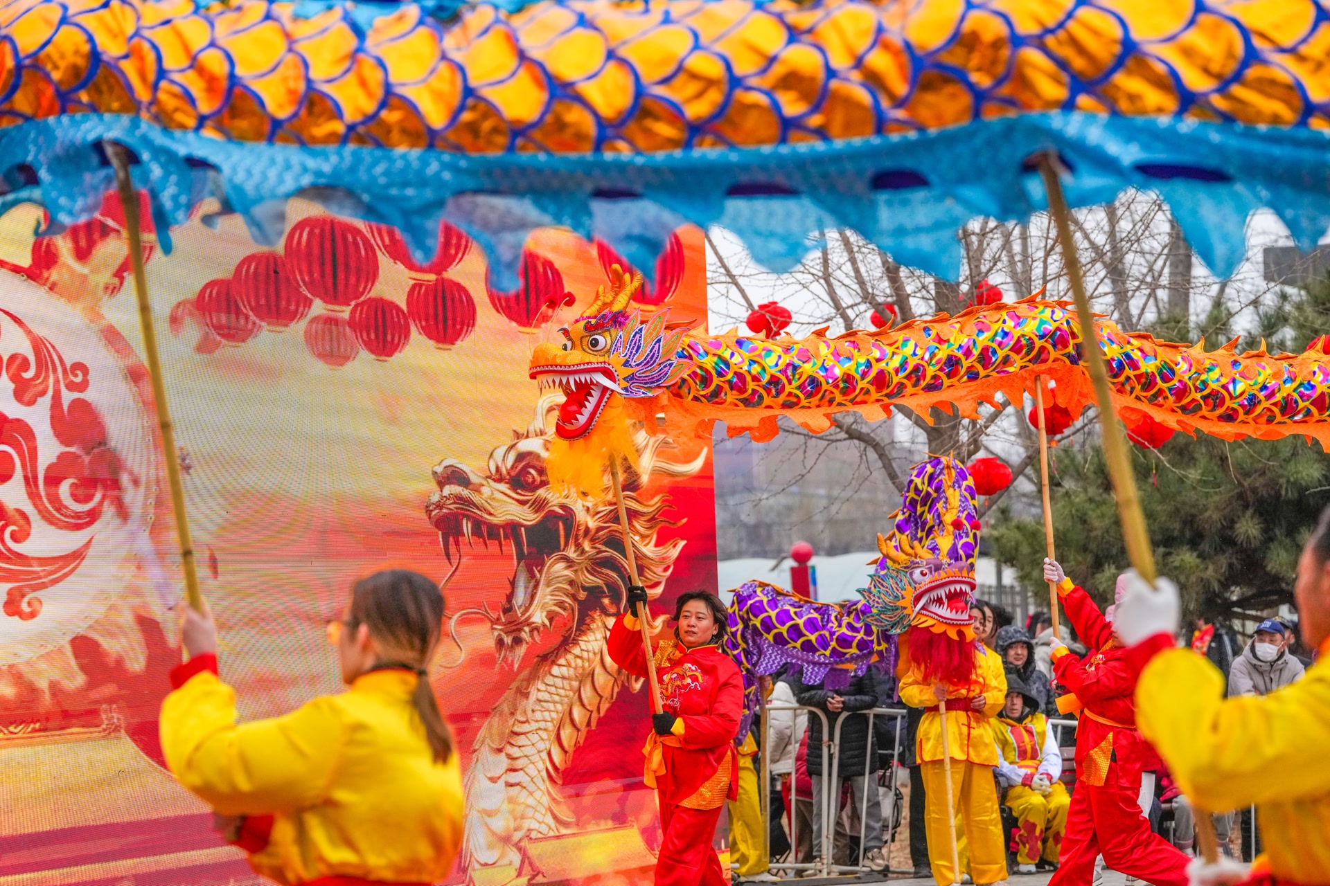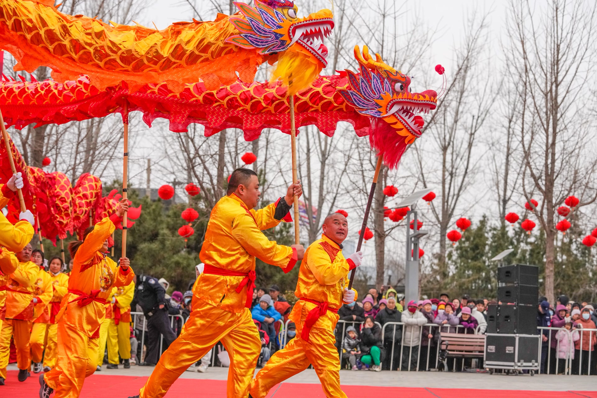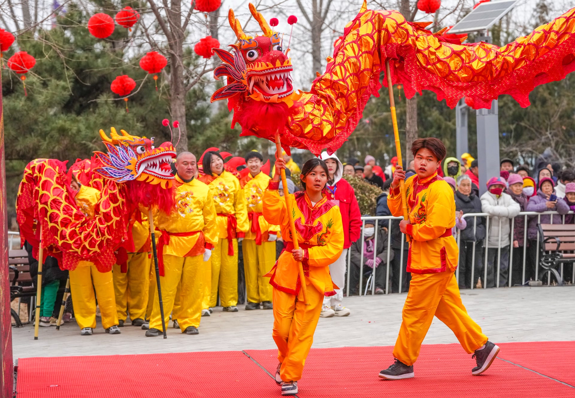 正月十二,顺义北务休闲公园内,锣鼓喧天,人声鼎沸。16支舞龙队整齐列队,30余条各色长龙蓄势待发。
