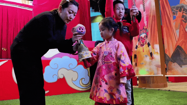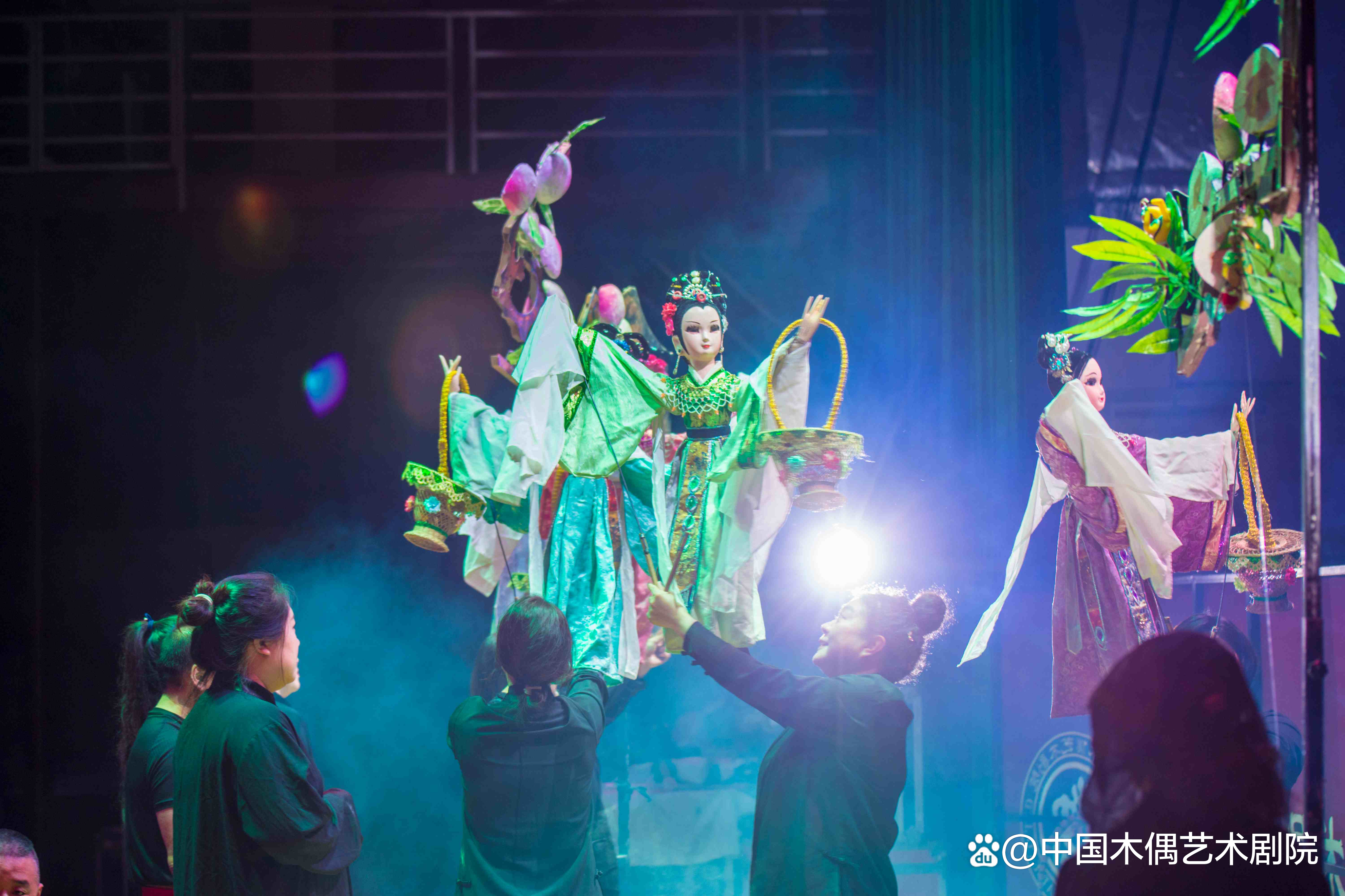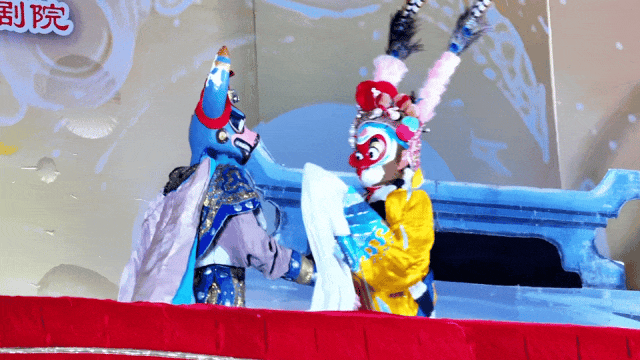 这场演出里,你能看到最地道的非遗技艺:剧组全方位调动杖头、布袋、特型等多种木偶表演技巧,108个内置机关的木偶角色栩栩如生,蟠桃树上的鲜果能随剧情“被采摘”,每一个细节都凝聚着三代木偶大师的心血。