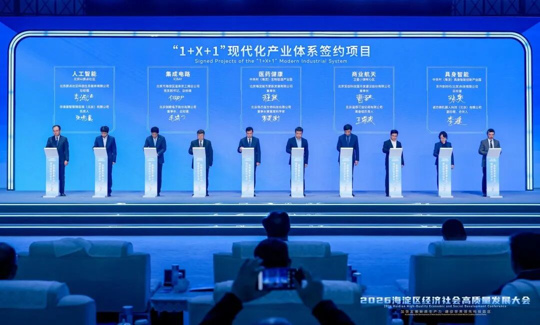 蓝图绘就,项目落地。聚焦人工智能、集成电路、医药健康、商业航天、具身智能等前沿领域,大会现场还举行了海淀区“1+X+1”现代化产业体系项目签约仪式,为海淀2026年产业发展注入强劲动能。