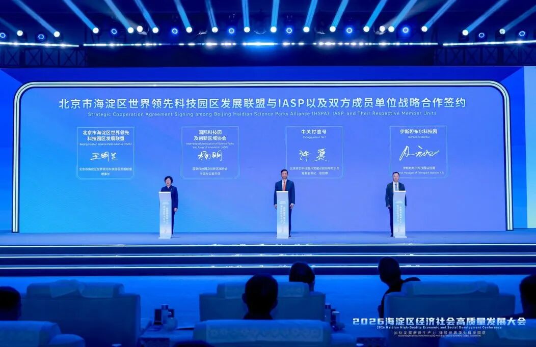 国际合作持续深化:北京市海淀区世界领先科技园区发展联盟与IASP(国际科技园区协会)签约,推动资源共享;中关村壹号与土耳其伊斯坦布尔科技园签约,搭建产业跨境联通桥梁。“海淀区全球服务合作伙伴”授牌,系统构建链接全球创新网络的关键枢纽。