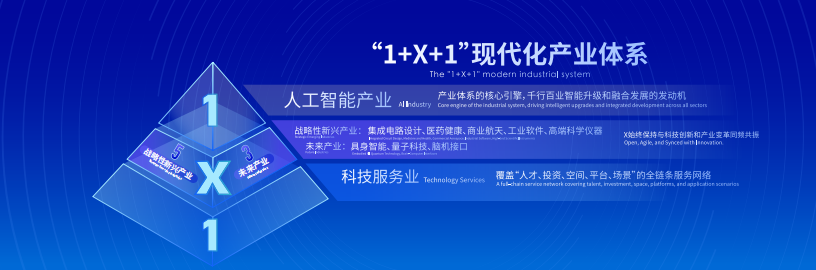 据悉,“1+X+1”现代化产业体系被形象地描述为一座创新引领、交叉融合、动能澎湃的产业创新金字塔。其中,塔尖的“1”即人工智能产业。作为整个产业体系的核心引擎,人工智能将发挥“发动机”作用,驱动千行百业的智能升级与融合发展。
