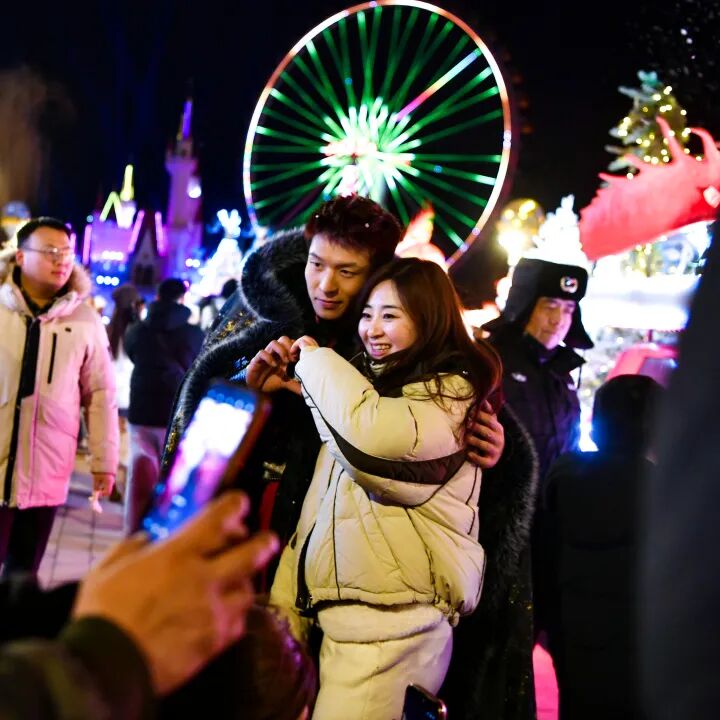 牵家人逛灯海