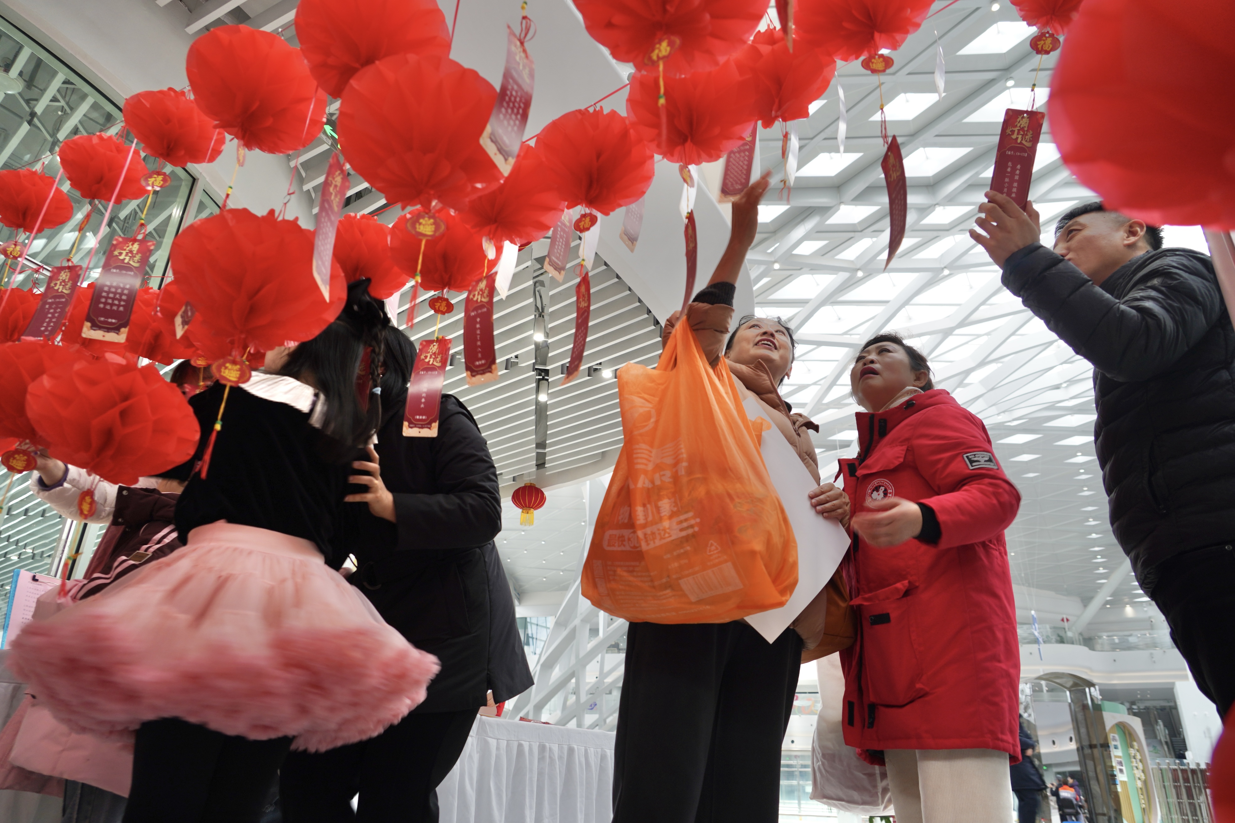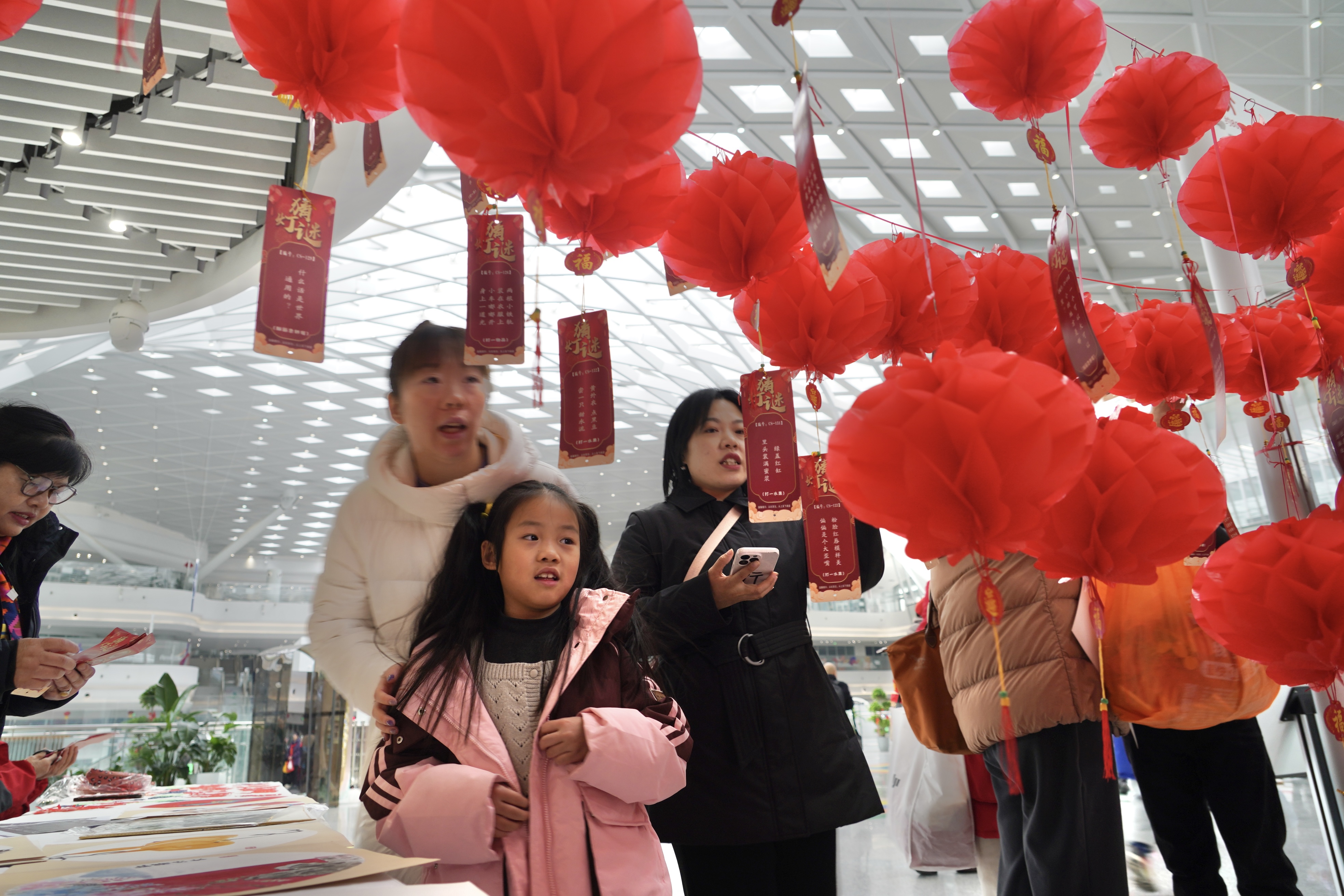 活动现场特设灯谜竞猜区,百余条灯谜涵盖传统文化、生活常识、安全知识等内容,融知识性、趣味性于一体。旅客与居民或驻足思索,或结伴探讨,在趣味互动中感受传统民俗魅力。