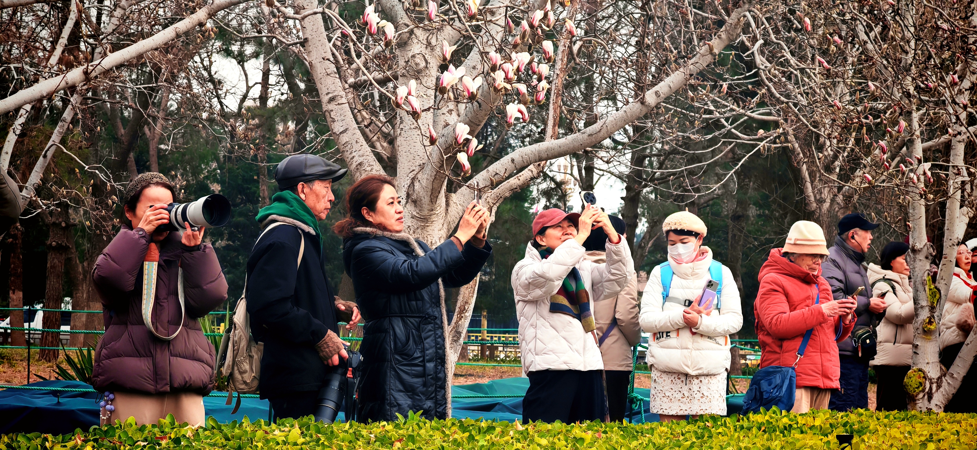 微风拂过,暗香浮动。这排玉兰树上突如其来的“惊喜”,引得众多市民和游客们纷纷驻足观赏和拍摄。这不仅是一树花开,更是京城历经冬日沉寂后对生机与温暖的殷切期盼与回应。