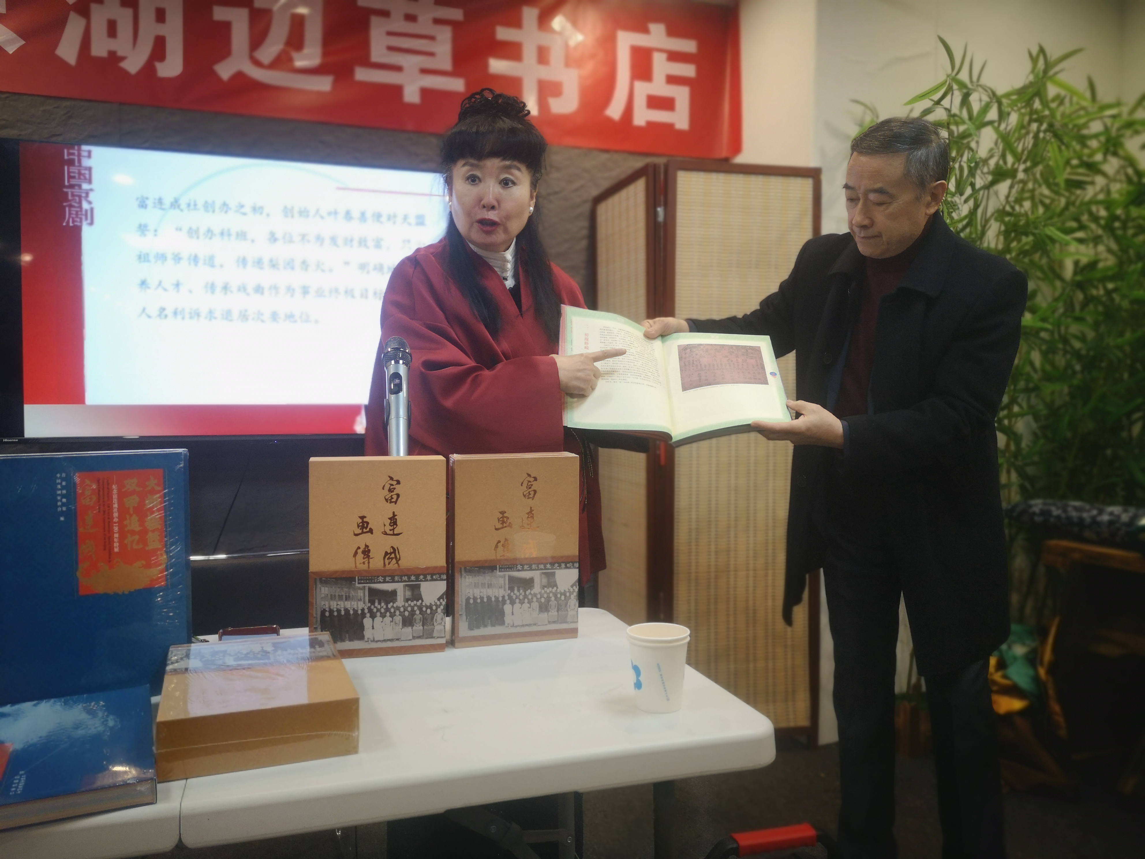 在北京最后一场纪念活动中,富连成社首任社长叶春善之孙叶金森、富连成社研究专家孙萍等,围绕《富连成画传》《大师摇篮 双甲追忆——纪念富连成社创办120周年特展》两套图书,就富连成社的历史贡献与影响与读者和戏迷进行了分享交流。