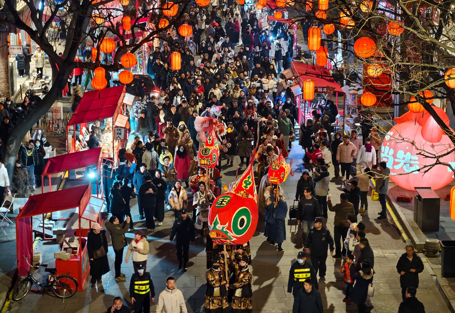 西市,兴隆寺门口,乐声响起,“变脸”开始上演,游人迅速围拢起来,20分钟的表演让人意犹未尽。延续春节期间的“有你就有戏”,舞台向所有游人敞开,谁都可以上台亮一嗓子,唱什么、演什么全凭心情。“过节就是图个乐和,能参与进去,比光当观众有意思。”