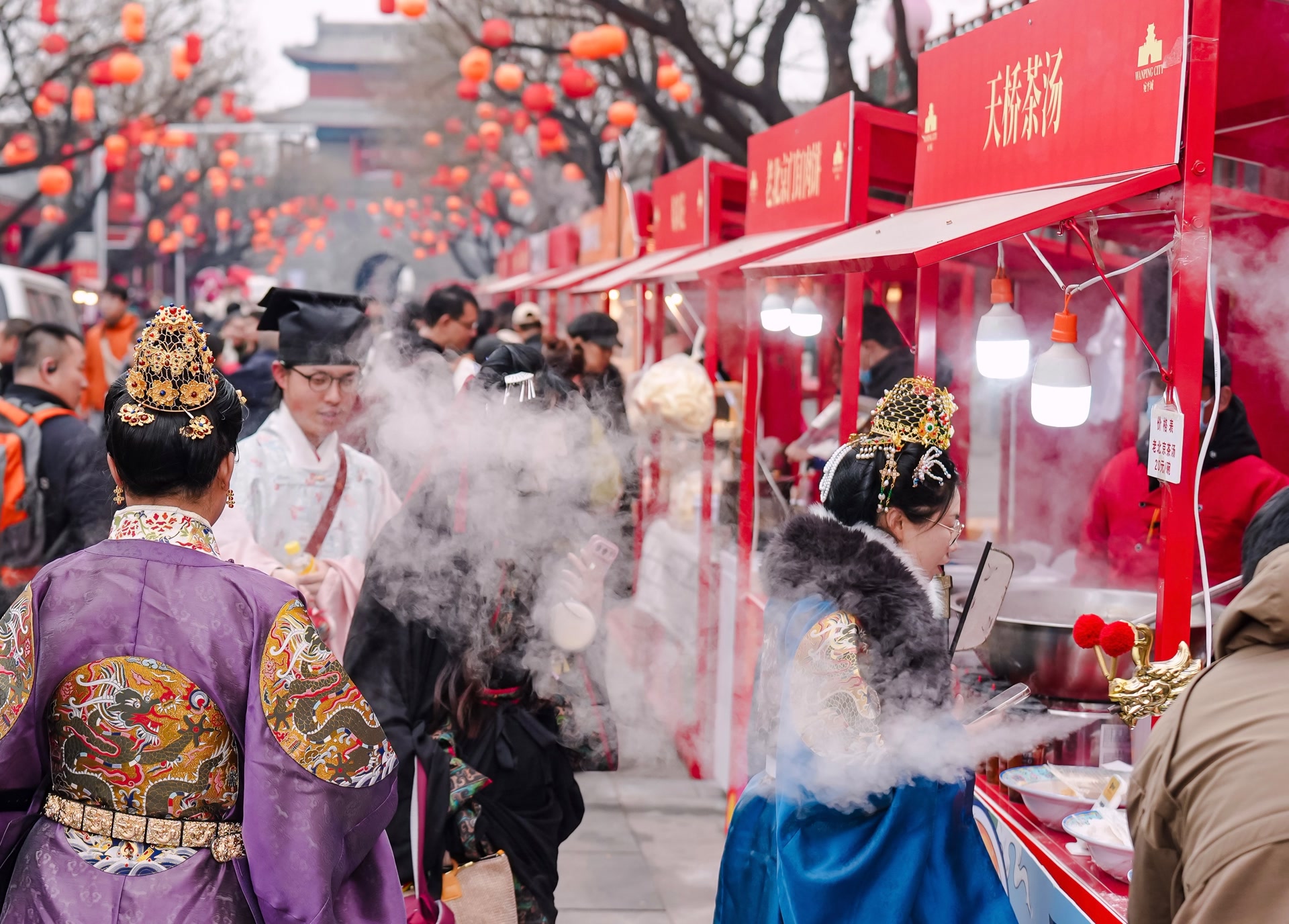 元宵节怎么少得了猜灯谜活动?这两天,宛平城主街两侧的店铺门前会挂满灯谜,猜中者就能进店领取一份小礼品。更添趣味的是与身着古装的NPC互动猜谜——“店小二”“卖花姑娘”“巡城士兵”……随时可能出现在您身边送上一道谜题,答对者不仅能合影留念,还能收获一份意外的小惊喜。