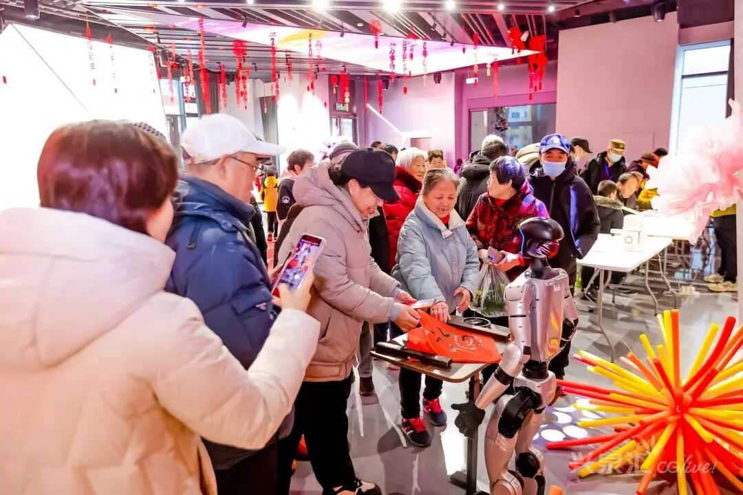 孩子们围着机器“兔爷”讨要糖果,年轻人在脑机接口体验区排起长队,老人们端着元宵,看机械战甲穿梭派送礼物。
