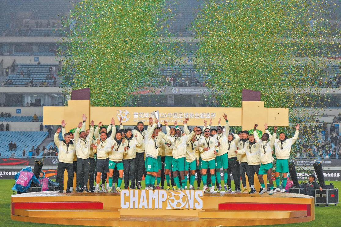 3月1日,2026中国足球协会超级杯在南京奥体中心体育场举行,北京国安队2比0战胜上海海港队,获得冠军。新华社记者 李博摄