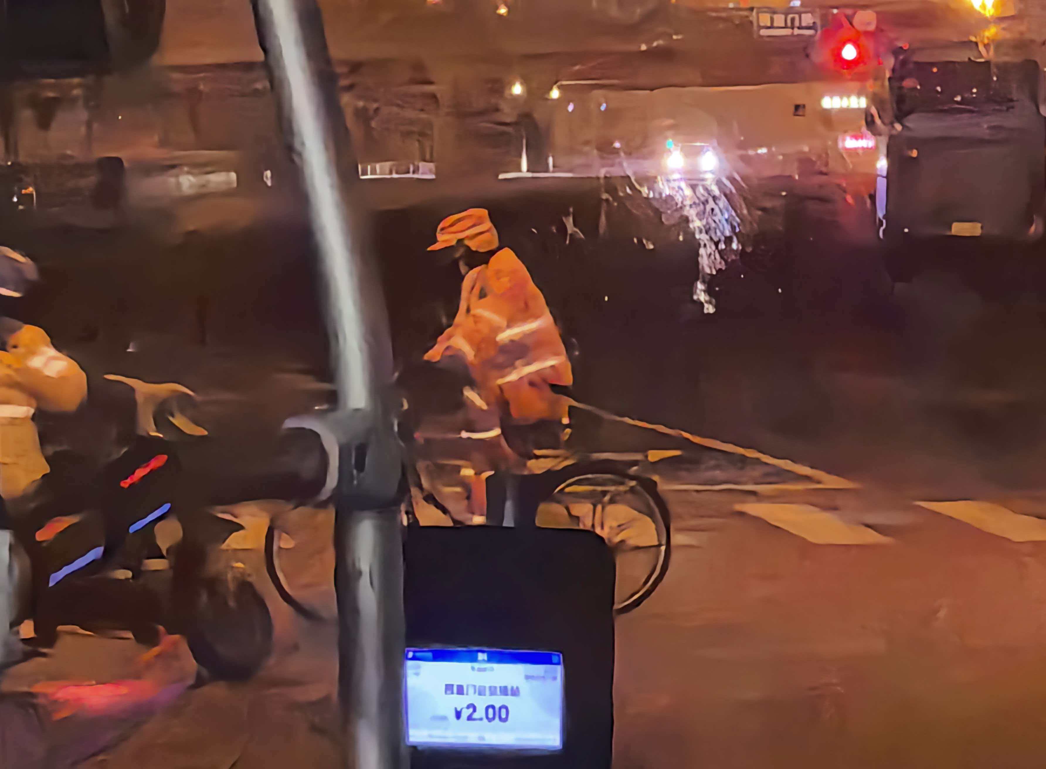 夜班公交挡风玻璃。拍摄于夜3公交车。