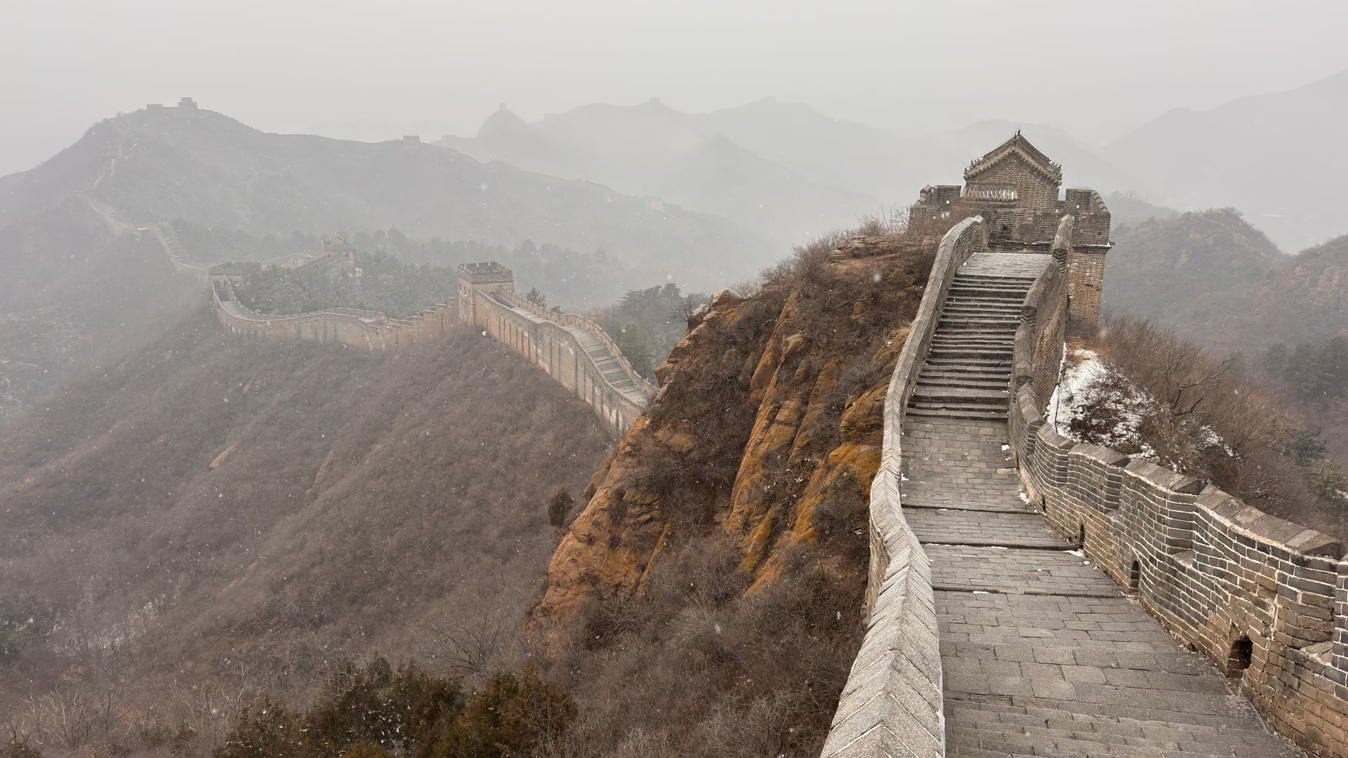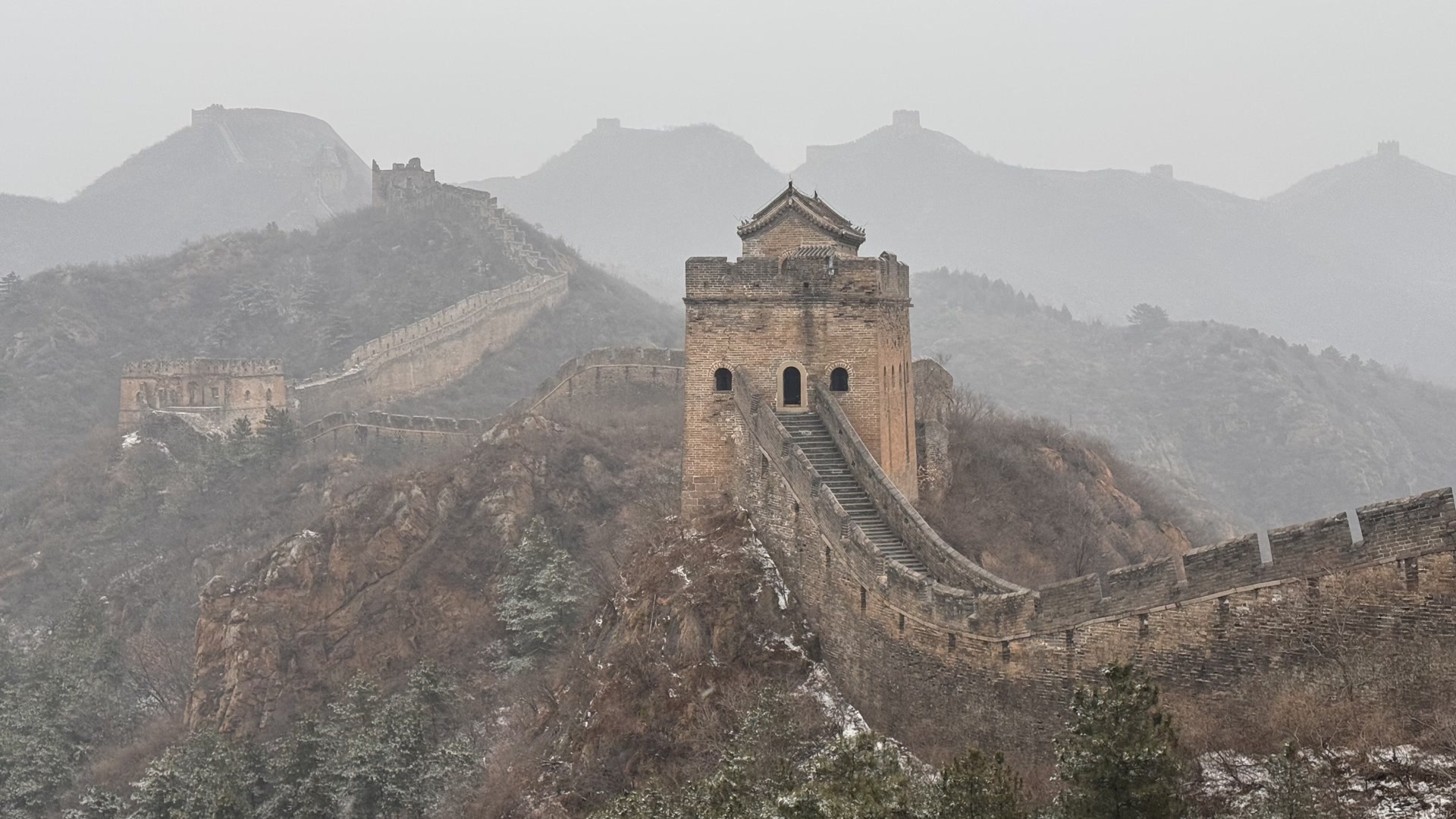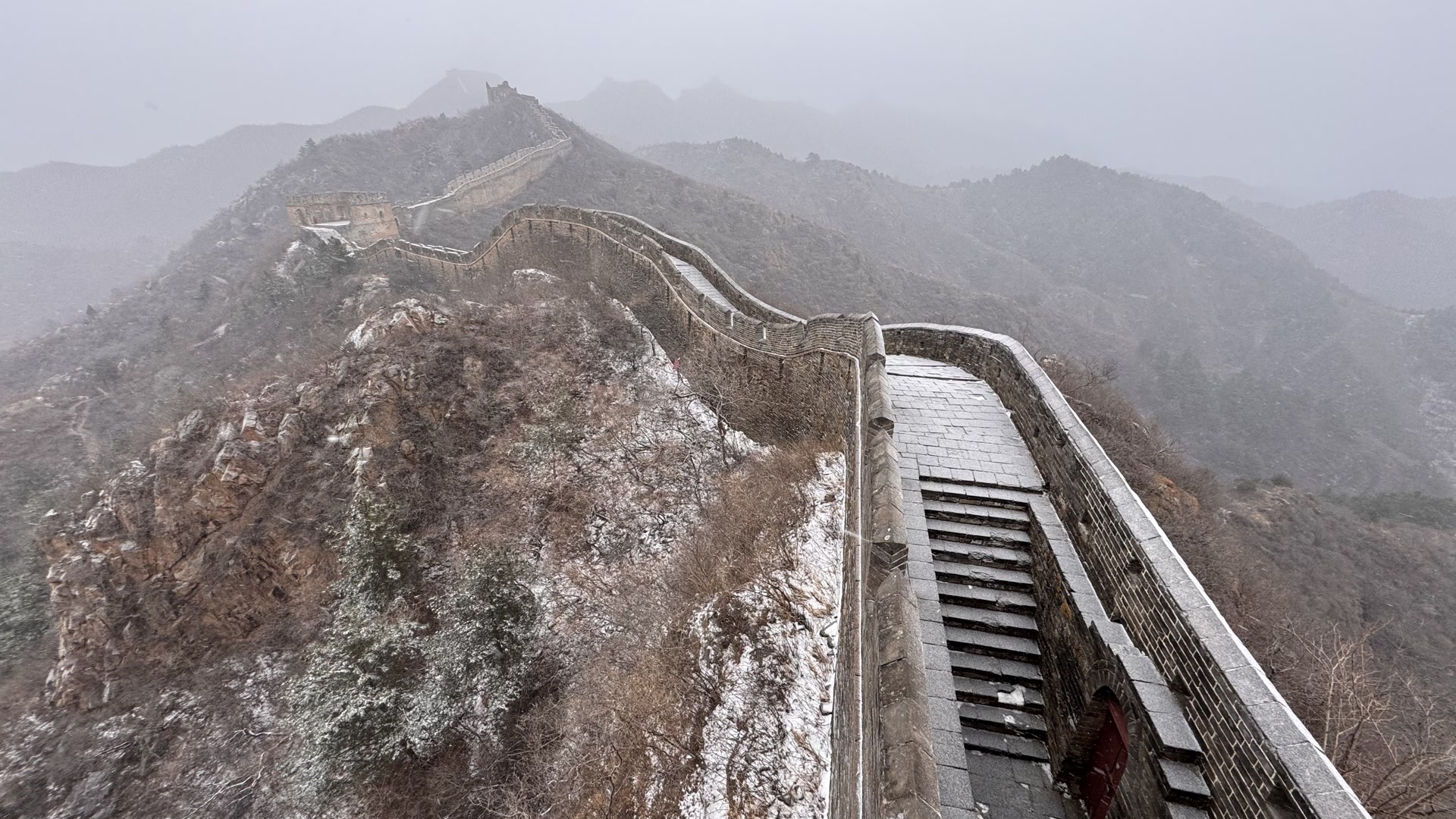 连日来,河北省承德市滦平县的金山岭长城雨雪交加,皑皑白雪与晨雾相互交融,景美如画。