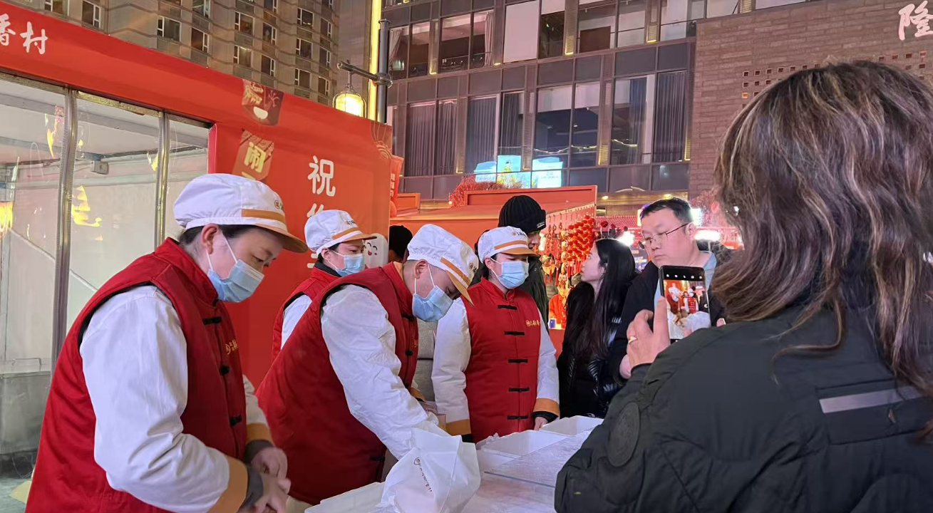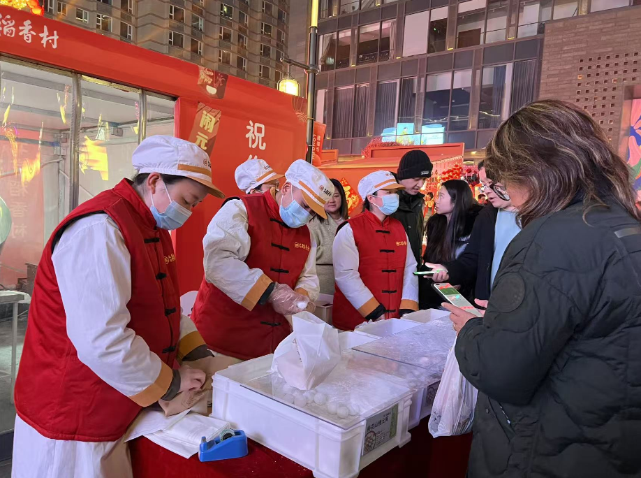 今年春节,隆福寺一跃成为商圈顶流。3月1日下午5点左右,新春市集里人头攒动,稻香村现摇元宵的摊位更是围了一圈游客。传统制作工艺搬到现场摊位,吸引了不少市民游客前来打卡。