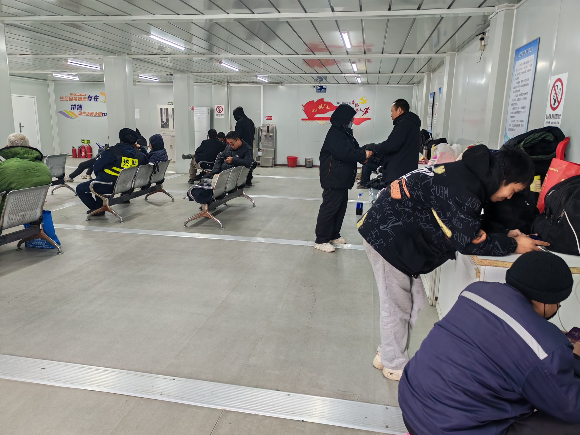 “找活儿吗?工资不错啊。”上午11点,马驹桥零工市场,记者一走进市场,就有劳务经纪人上前询问。而在其身边不远,一辆大巴车上,陆续走下来约20名工人,在现场劳务人员的指导下,一步步换上保安制服,等待发车前往工作地。