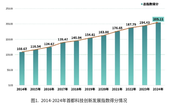 3月2日,“首都科技创新发展指数2025”在京发布。数据显示,首都科技创新总指数得分达205.11分,2014年至2024年整体增幅达88.75%。尤为值得注意的是,同期科技创新效率大幅提升67.21%,标志着北京正加速从要素投入驱动转向创新驱动。