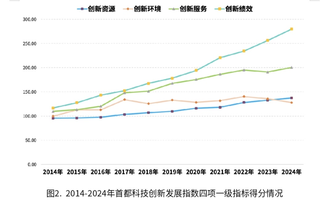 本次发布的“首科指数2025”立足于“十五五”新起点,从四项一级指标来看,十年间均实现显著增长。其中,创新绩效增长最为迅猛,总体增幅达140.17%;创新服务增幅达82.99%;创新资源与创新环境分别增长44.01%和28.26%。