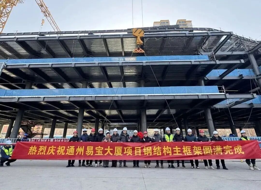 位于通州区永顺镇的易宝大厦,近期已经完成钢结构主框架施工。这座以“启航游轮”为设计理念的地标,完成由蓝图到实体建筑的跨越。
