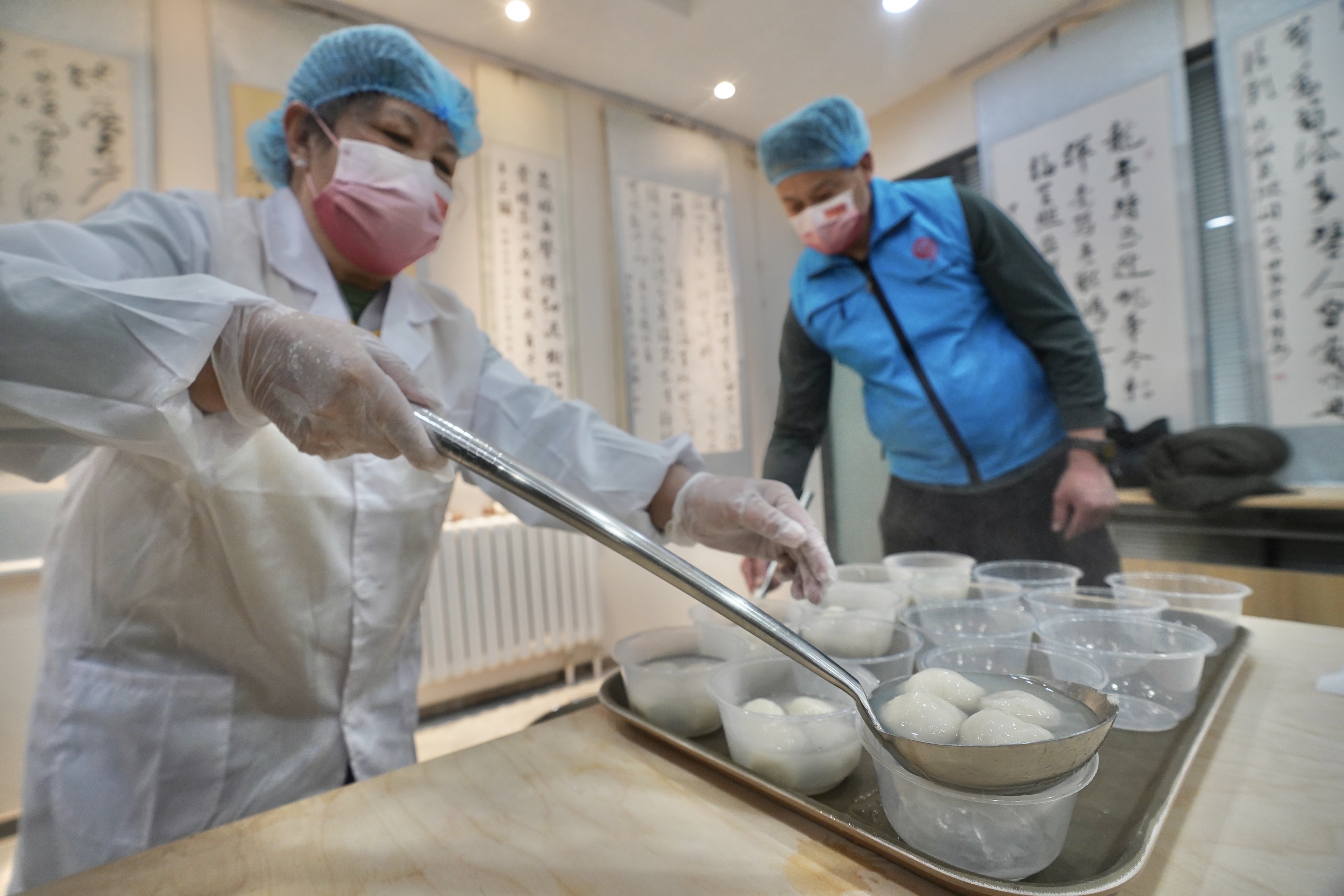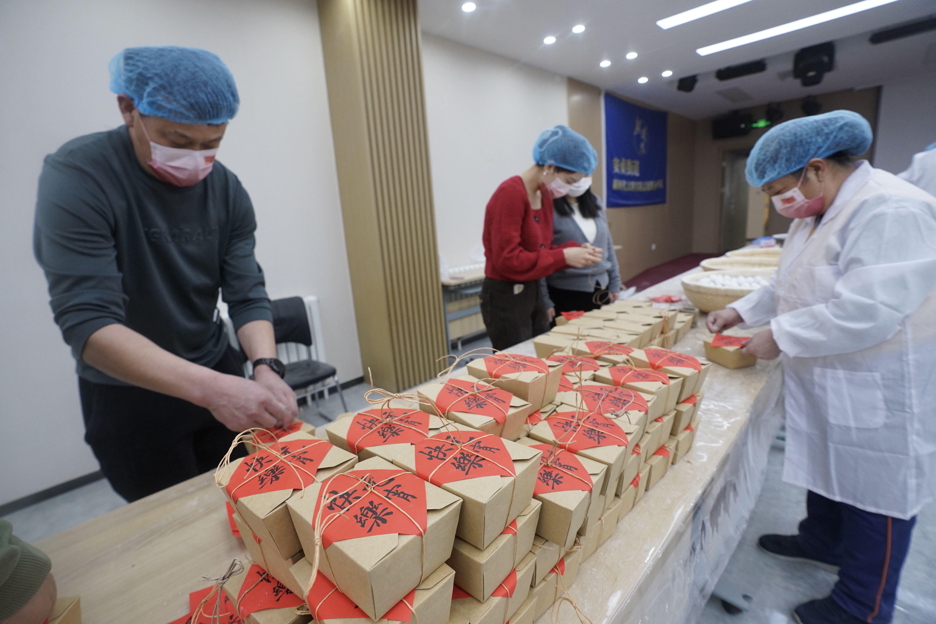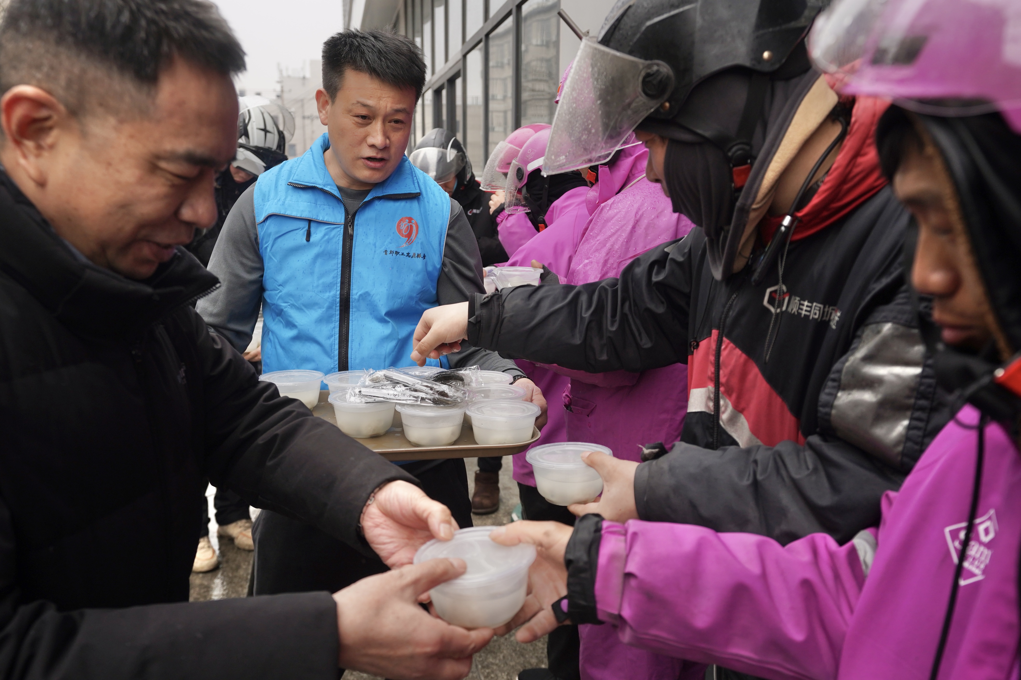 临近中午,一碗碗热气腾腾的元宵摆满了桌面,象征团圆和幸福的汤圆让大家暖身又暖心。志愿者们还将热腾腾的元宵送到辖区的快递外卖站点,以及辛勤工作的环卫工人和保安员手中,给他们送去节日的祝福。