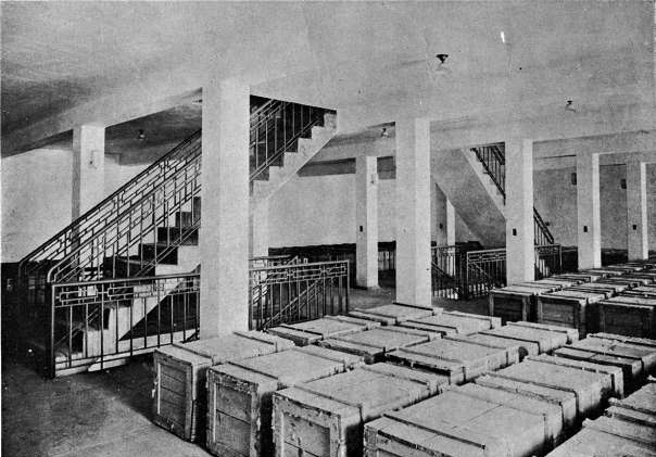 1931年,工程上马,主要由工程处副处长汪申设计图纸,故宫博物院顾问朱启钤、彭志云审核。建筑呈凹字形,分上下两层,库身全用铁筋洋灰筑成,窗有三层,外层为铁栅,中层为铁框嵌玻璃,内层则是夹层保险窗。6月25日兴工,11月底因天寒停工,此时已经完成主体,仅余东西两库房的琉璃瓦顶未能装上,1932年开春后正式完工。