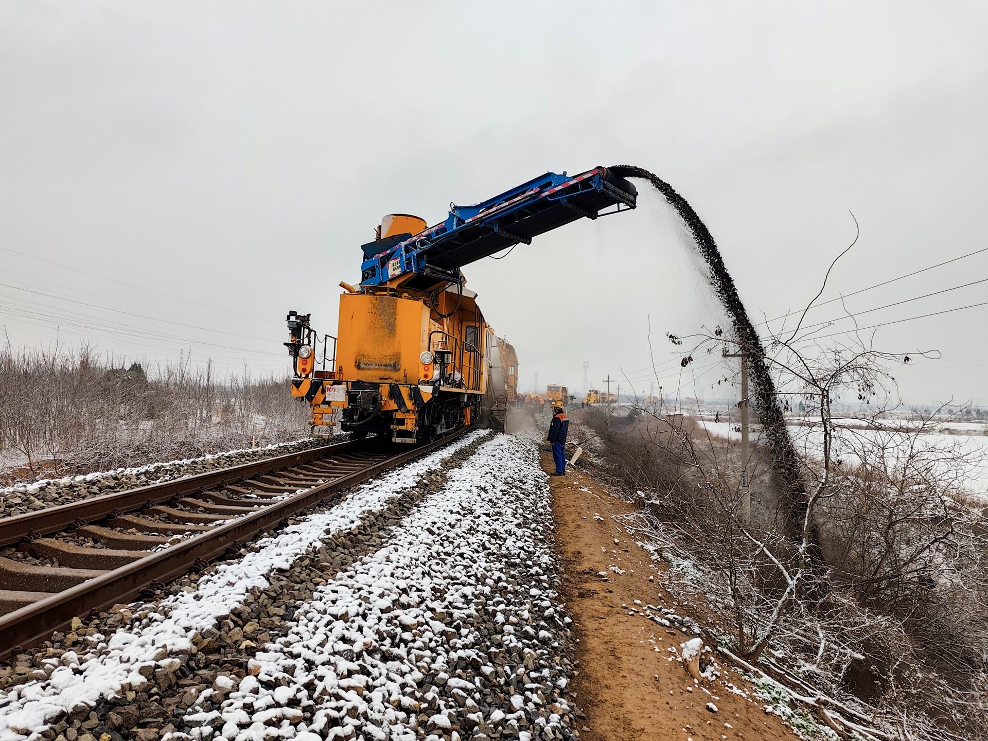 为高效完成丰台西站清筛线路、换枕根等多项施工任务,丰台工务段全面推行“机械主导、人工补位”的作业模式。道床清筛借助专业机械,施工效率提升30%;使用高精度捣固车,实现毫米级精准作业;轨枕更换实现全程机械化施工,效率较人工作业提升70%。