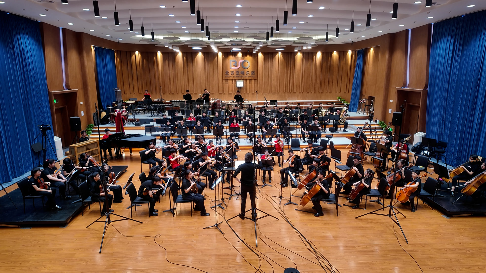 2024年8月,北京交响乐团正式搬迁至副中心台湖演艺小镇的永久团址,随即举办了附属少年乐团——北京少年交响乐团的启动仪式。这是北京首个以公益化、美育化、职业化模式管理训练的少年乐团。经过前期招募、选拔与短期集训,少交正式宣告亮相。一年半来,经过几轮补录,乐团核心团员稳定在八十余人。随着新学期到来,部分老团员即将面临更为紧张的学业,可能暂别日常排练,乐团决定录制一张数字专辑,为孩子们留下一份珍贵的成长纪念。