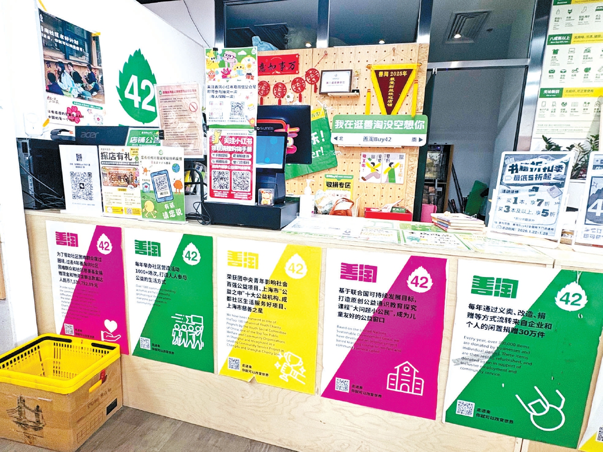 位于清华科技园学研大厦一层临街的“善淘Buy42”(下文简称“善淘”)因独特的慈善标签而备受关注。店内随处可见公益标识,立柱上贴满志愿者招募信息,处处体现着公益初心。