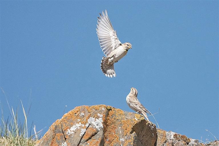 在青海湖畔拍摄的石雀。 徐谭摄/光明图片
