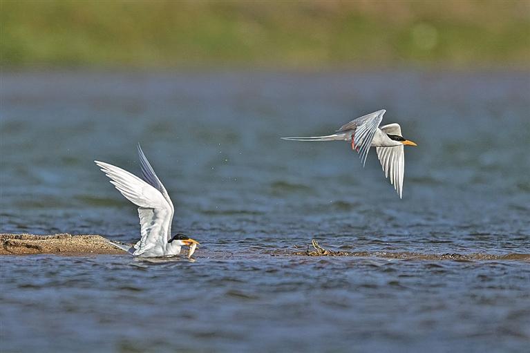 在中国,河燕鸥仅见分布于盈江县的大盈江“芒胆—拉贺练”10余公里的流域。这种依赖淡水河流生存的鸥类,对筑巢地的选择近乎苛刻——它们只选择地势平坦、有水域环绕的江边砾石和纯净沙滩地。这样自然天成、无人为干扰的筑巢地,在绵长宽阔的大盈江上越来越少,这也是河燕鸥种群稀少的主要原因。