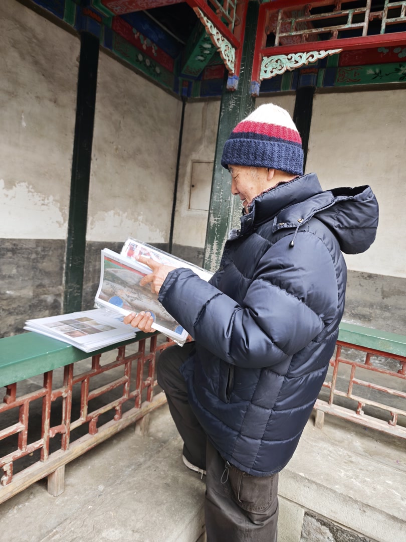 这份坚持,更离不开长年累月的奔波与吃苦。年轻时当兵练就的好身板,成了他研究的“底气”。夏天清晨六点半,颐和园刚开门他就进园了,顶着高温在廊下看画,衣服湿透了也浑然不觉,一直待到下午三点多才往回走;冬天则是找碑刻的好时候,“其他季节山上草长树茂,石头上的字被挡得严严实实,冬天叶子落了、草枯了,碑刻才能露‘真面目’。”他踩着薄雪爬香山,在山上一待就是五六个小时,手脚冻得发麻,却依然仔细辨认每一个模糊的字迹。这份常人难以坚持的辛苦,在他口中却轻描淡写:“就当锻炼身体,晒晒太阳,心里还充实。”
