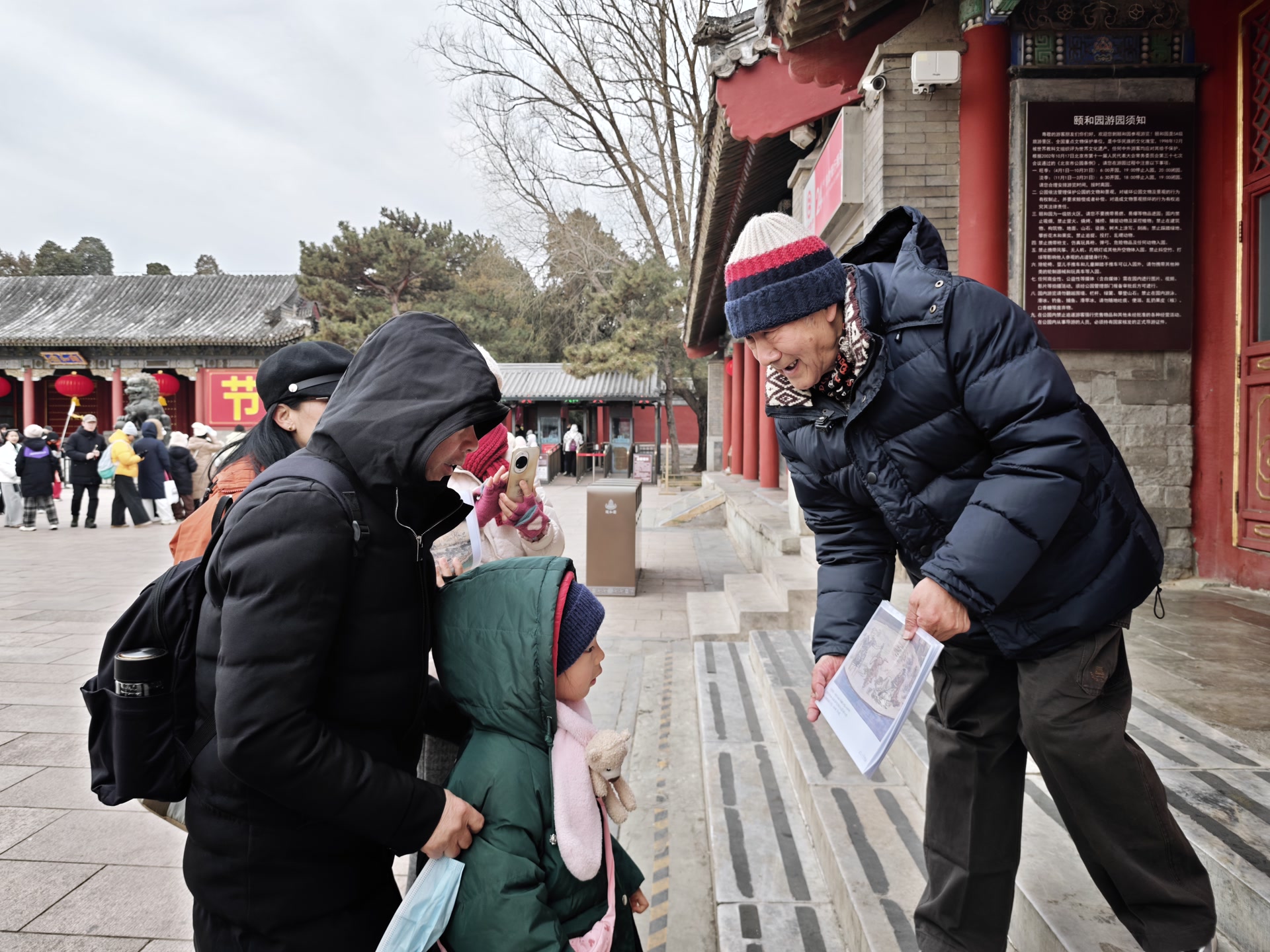 马年新春,颐和园东宫门外,一位身板挺直的老人开讲了:“马年到了,咱们今天的讲解,就从颐和园彩画里藏着的‘千军万马’开始,大伙跟着我一起找找看!”