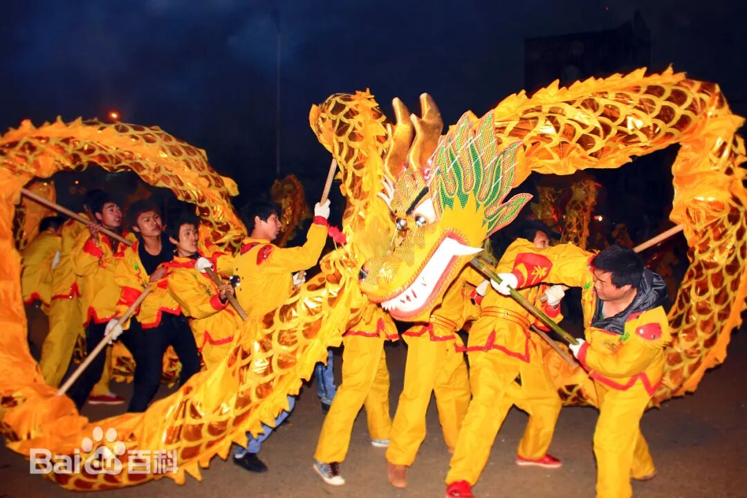 舞龙灯,也称耍龙灯或龙舞。长长的龙身,蜿蜒起伏,翻腾游走,龙身灯光闪烁,流光溢彩,景象奇丽壮观 。华夏崇尚龙,把龙作为吉祥的象征。辛弃疾《青玉案·元夕》曾描述宋代元宵节盛况:“东风夜放花千树,更吹落,星如雨。宝马雕车香满路。凤箫声动,玉壶光转,一夜鱼龙舞。”