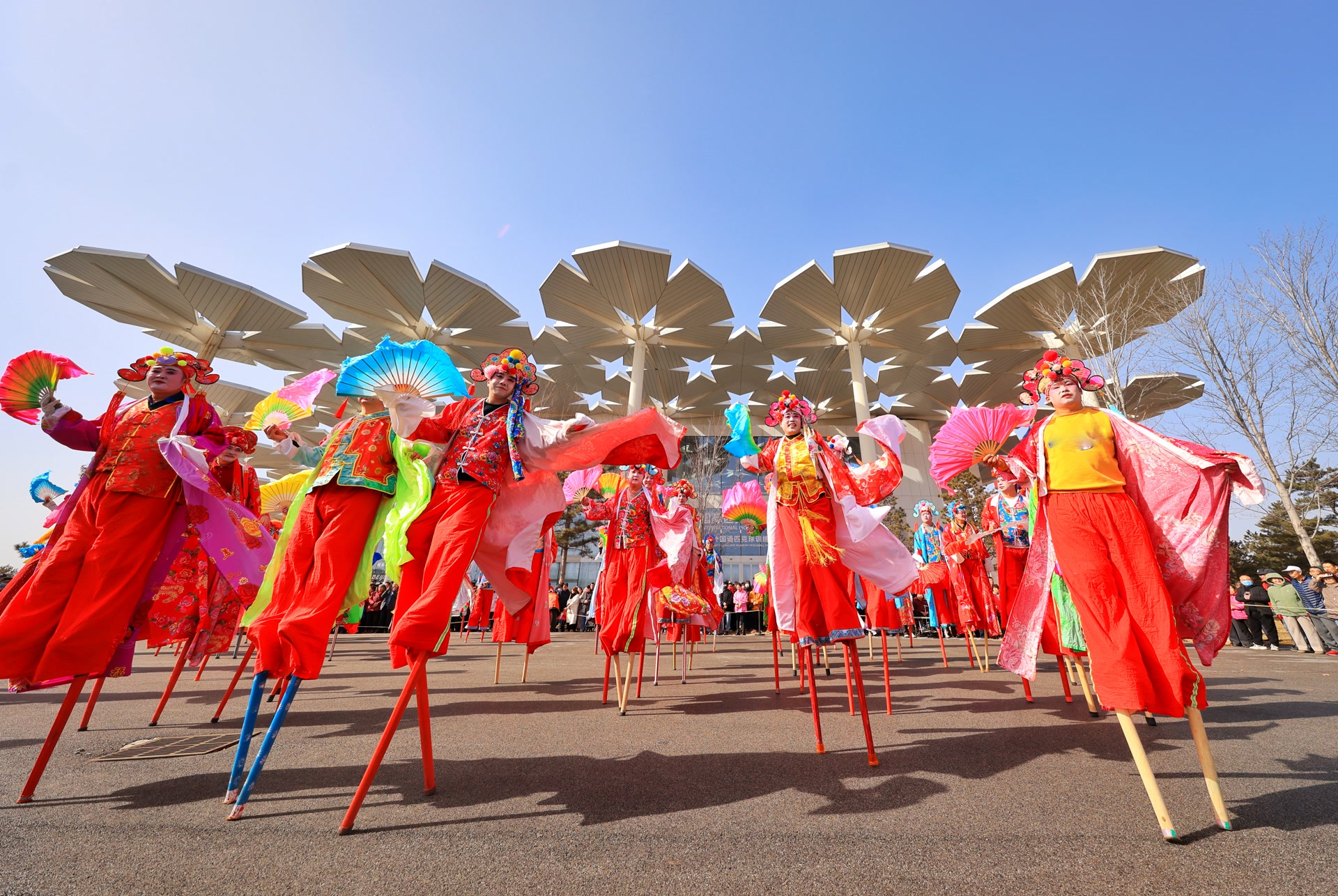 3月3日上午,延庆区元宵节花会展演在北京世园国际旅游度假区精彩上演,来自全区各乡镇、街道的近30支优秀花会队伍齐聚一堂,以高跷、秧歌、旱船、竹马等传统民俗节目,与广大市民游客共庆元宵佳节。