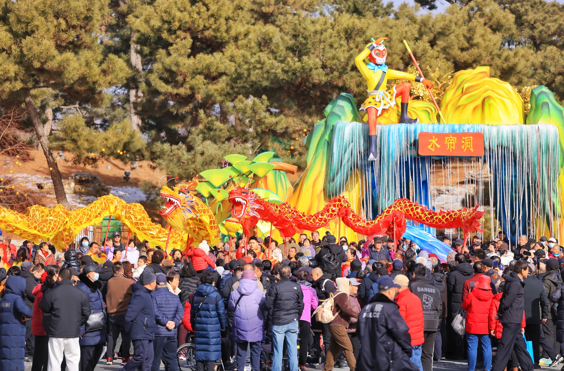 除花会展演外,猜灯谜、特色市集等配套活动同样人气高涨。园区在1号门、中国馆、国际馆等10个点位设置猜灯谜互动环节,市民游客答对即可领取10元代金券,在趣味互动中感受非遗魅力。此外,“灵霄殿·天宫市集”、非遗市集、特色小吃等多元场景汇集文创周边、农特产品与互动项目。