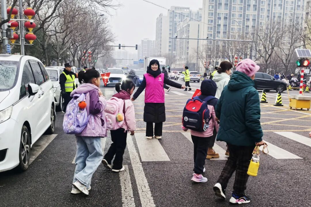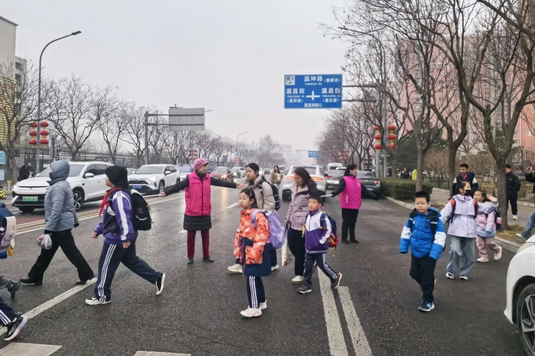 学子返校首日,北京市第八十中学红星未来学校与瀛海镇平安建设办公室(综治)、综合行政执法队、瀛海派出所等单位紧密联动,协同学校保安、教师干部及家长志愿者,共同筑牢校园安全防线。
