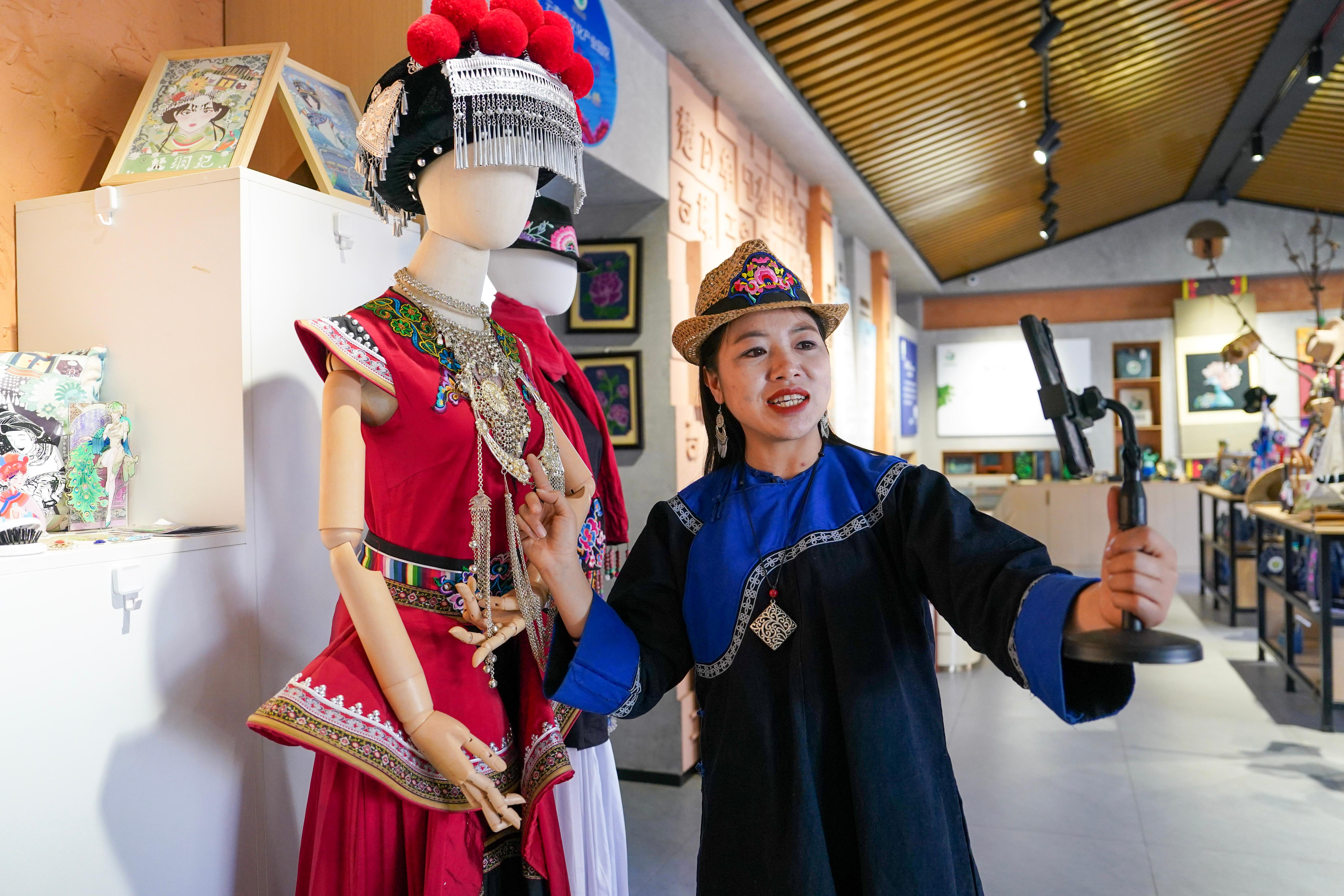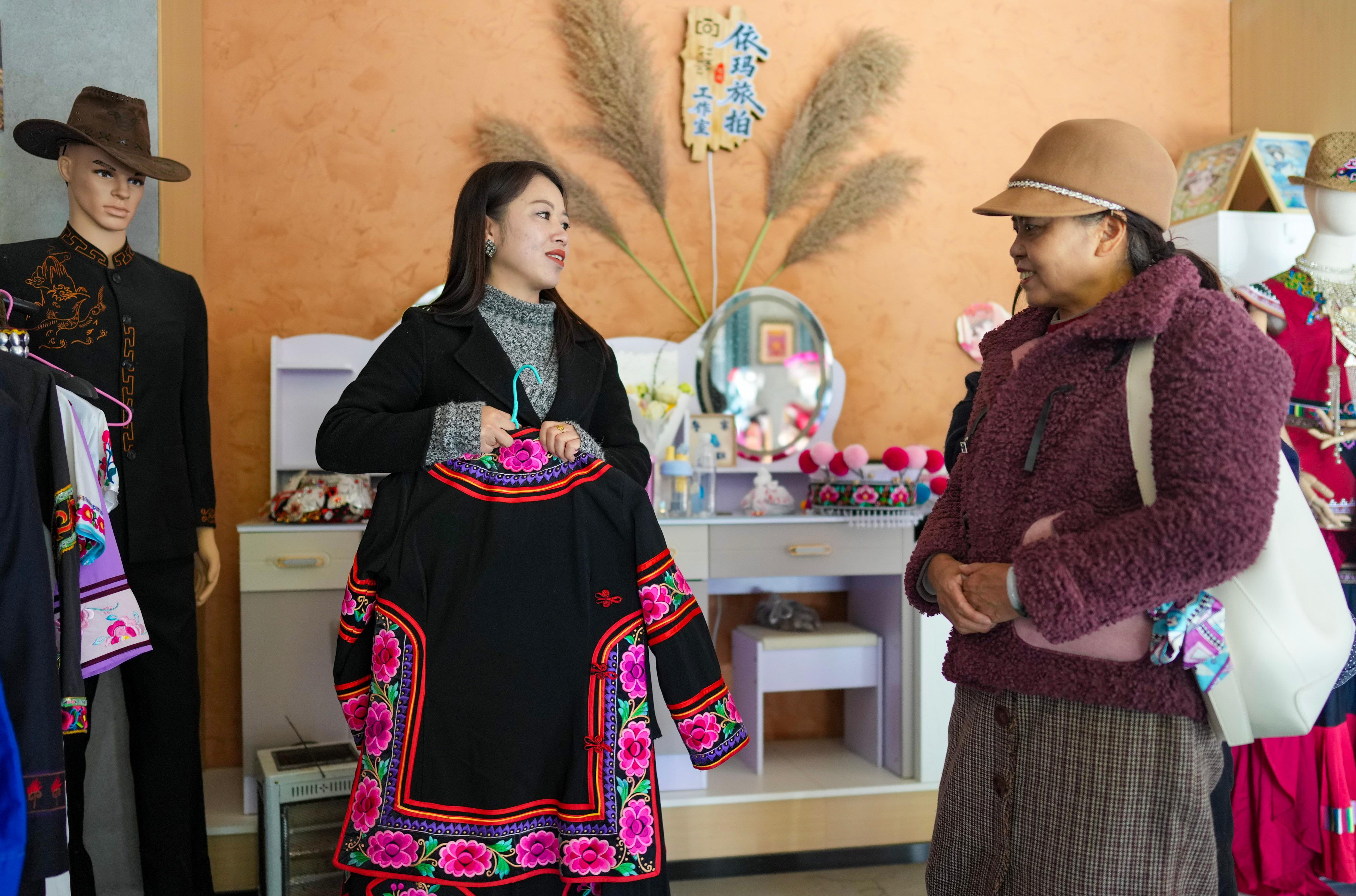 十余年间,金瑞瑞从一名绣女成长为带动2000余名妇女就业的产业带头人。她创立“公司+协会+绣娘”模式,在村寨设立彝绣车间,帮助妇女实现“背着娃、绣着花、养着家”的愿景。通过将传统纹样创新融入现代文创产品,她推动彝绣从盛装走向日常。同时,她设计的彝绣服饰相继亮相纽约、米兰、巴黎等国际时装周舞台。