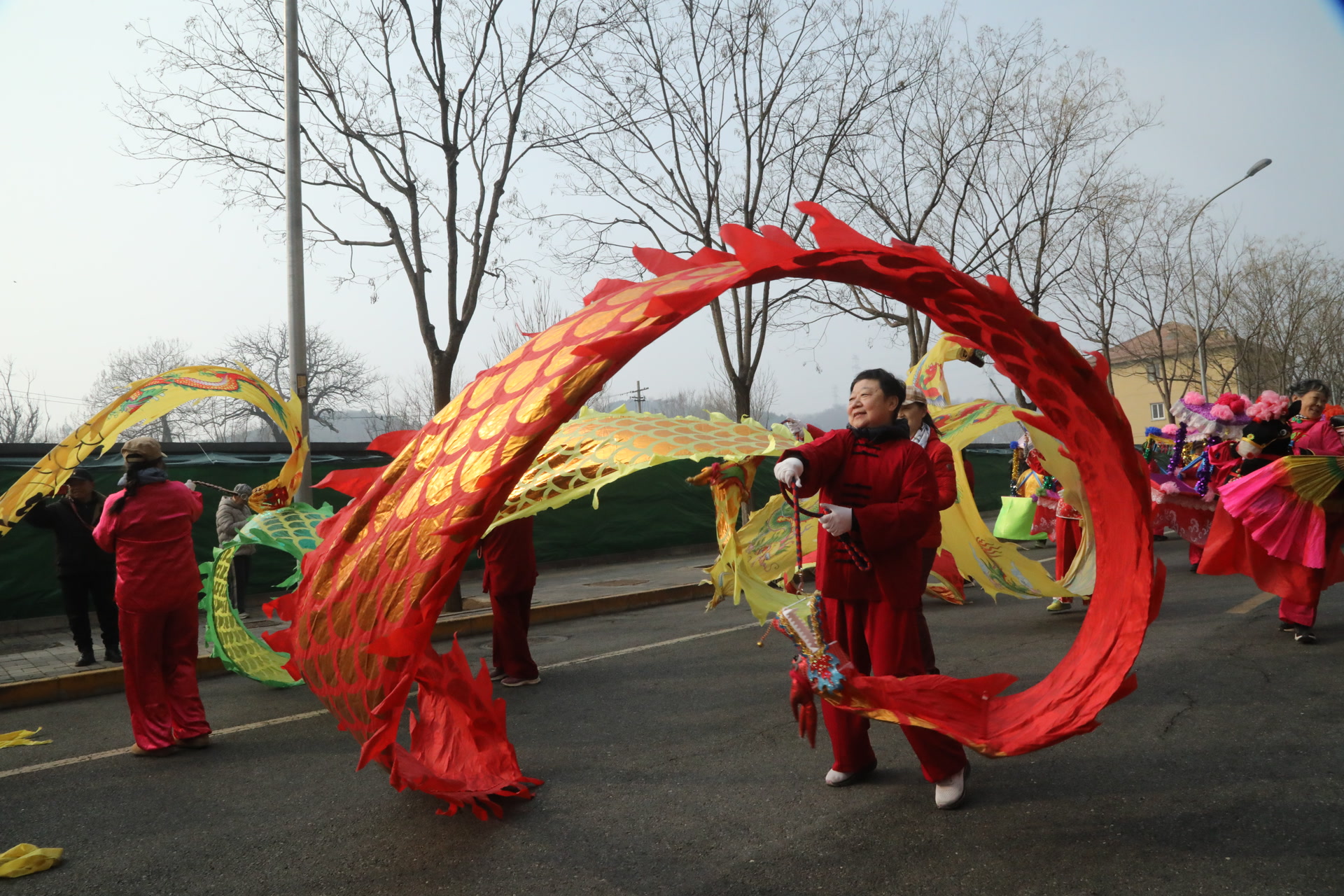 巡游队伍中,装饰精美的传统秧歌花车成为街头一道靓丽风景线。花车以喜庆中国红为主色调,大红灯笼高高悬挂,“欢度元宵”横幅醒目亮眼,车上演员身着古韵华服,倾情演绎经典戏曲片段,将传统庙会的热闹与雅致搬至社区街头,让居民近距离感受传统艺术之美。威风凛凛的舞龙表演更是将现场氛围推向顶点,金色长龙在队员手中灵活翻转,时而蛟龙出海气势如虹,时而盘龙云海温婉灵动,腾挪跳跃间尽显民俗神韵,引得居民纷纷驻足围观、拍手叫好。活动现场热闹非凡,居民们或跟随队伍缓步前行,或拿出手机、相机定格精彩瞬间,欢声笑语萦绕全程。