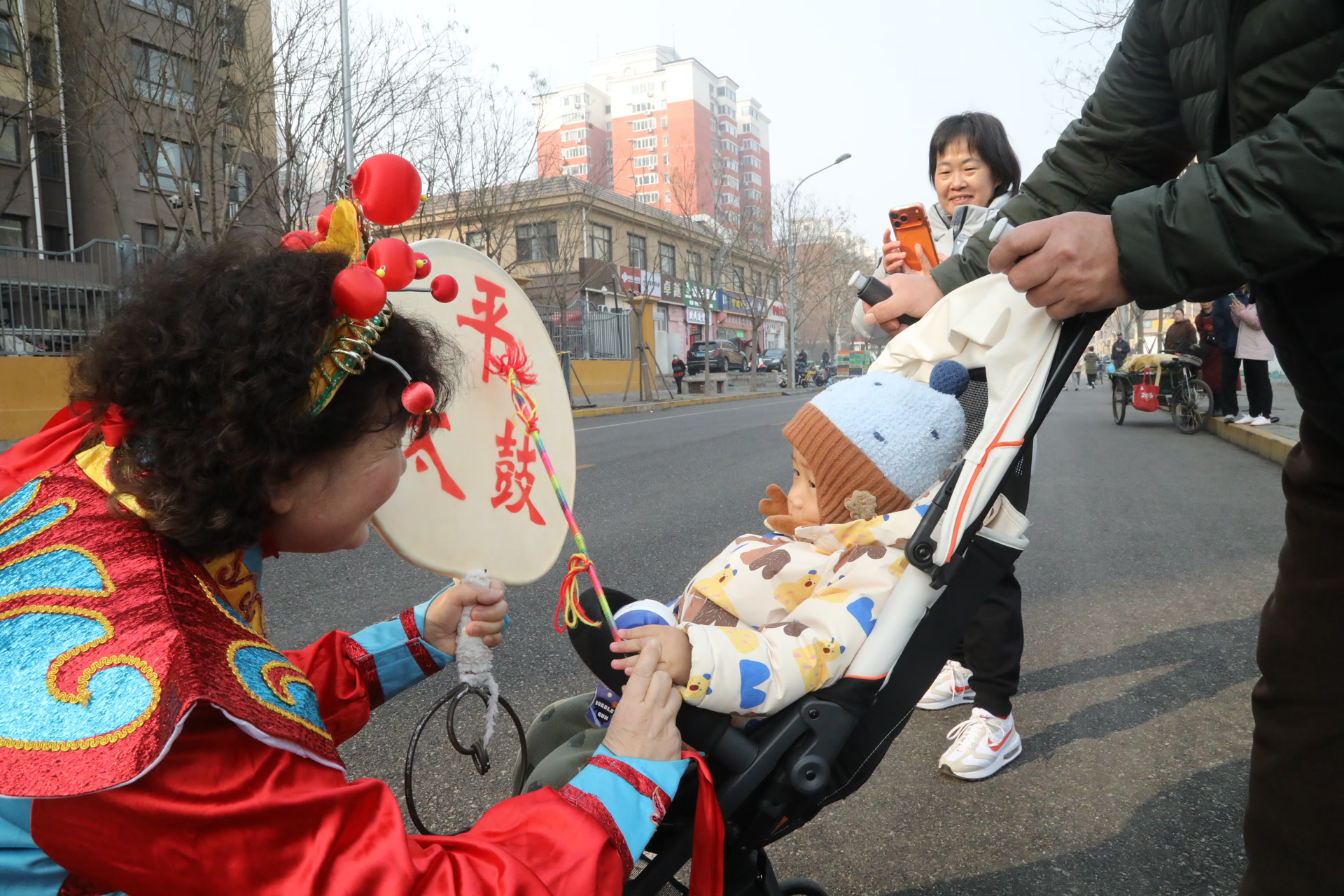 作为本次活动的核心亮点,北京市非物质文化遗产代表性传承队伍——刘娘府太平鼓队惊艳亮相。鼓手们身着特色服饰,步履铿锵,手中太平鼓上下翻飞、节奏明快,雄浑有力的鼓声传遍街巷,既敲出了元宵佳节的热闹欢腾,更传递出居民期盼天下太平、安居乐业的美好心愿,让古老非遗在行进中绽放鲜活魅力。紧随其后的传统秧歌队意气风发,阿姨们身着艳丽盛装,手持彩绸彩扇,踏着明快鼓点翩然起舞,身姿灵动、神采飞扬,诙谐生动的表演引得围观居民掌声不断、喝彩连连。