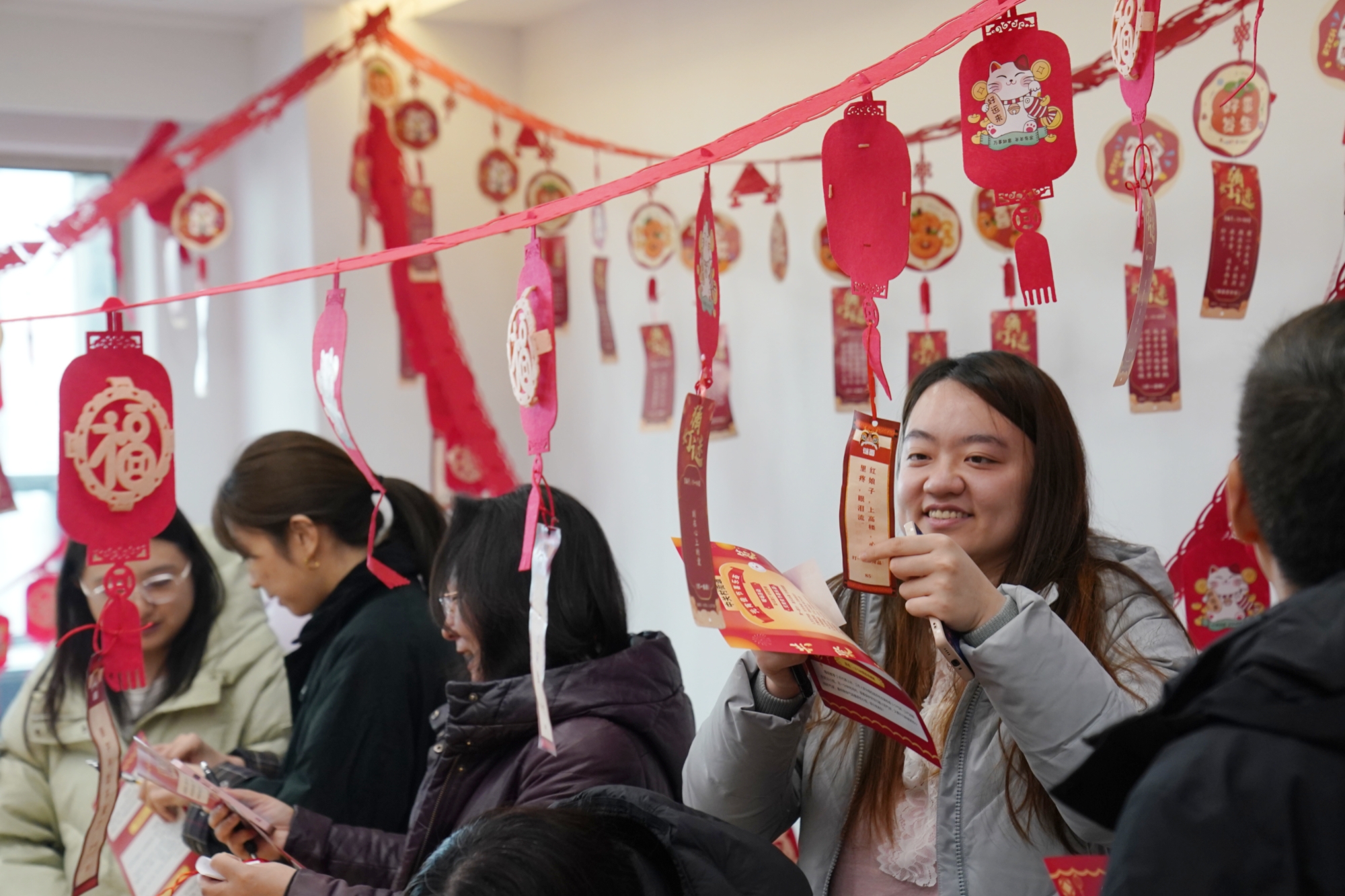 活动现场,数十条涵盖民俗文化、马年吉祥语、中关村发展主题的灯谜在会场悬挂,大家在灯谜前驻足讨论、趣味竞猜,感受传统文化魅力。