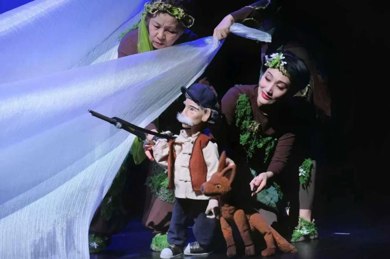 剧中演员们凭借精湛的操偶技艺与身体语言,追求“人偶合一”的艺术境界。木偶制作师兼操偶师韩星,在《山灵》的木偶创作中融合传统皮影与木偶的双重工艺,实现突破性探索,以细腻入微的操纵技法,赋予小狐狸鲜活的生命质感:从初探洞穴时的胆怯蹒跚,到追逐蝴蝶时的天真烂漫;从狐狸妈妈受伤时的惊恐无助,到最终与猎人和解时的成熟从容,每一个动作都饱含情感张力。