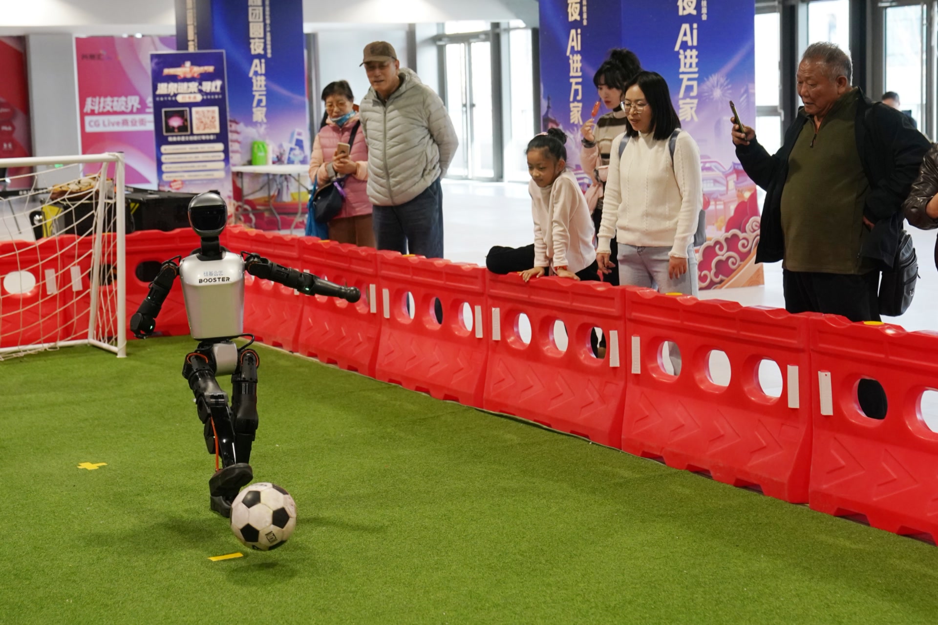 唱京剧、打快板、踢足球、格斗、拳击……机器人现场展示了十八般武艺,市民和游人纷纷涌入园区观看“硅基生命”的精彩表演。这场庙会,有70余家科技企业参与,30多款机器人亮相,集中呈现具身智能、无人机、脑机接口等前沿技术成果,小鹏飞行汽车、虎鲸无人船也褪去工业符号的距离感,成为点燃青少年好奇心的“科技玩具”。