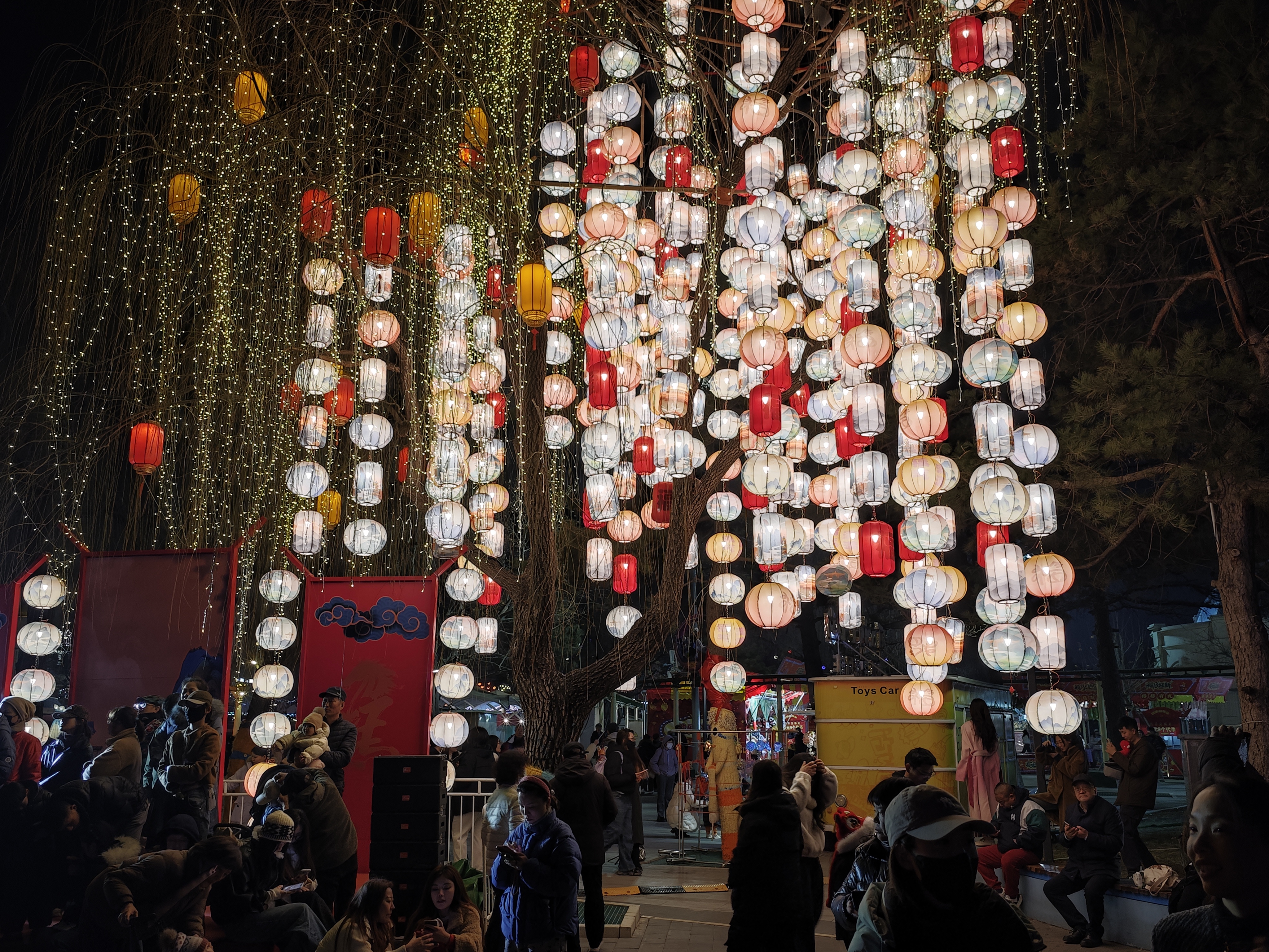 3月3日元宵节夜晚,石景山游乐园成为欢乐的海洋,游客赏花灯、猜灯谜、观看打铁花、品美味小吃,尽情享受元宵节的快乐。