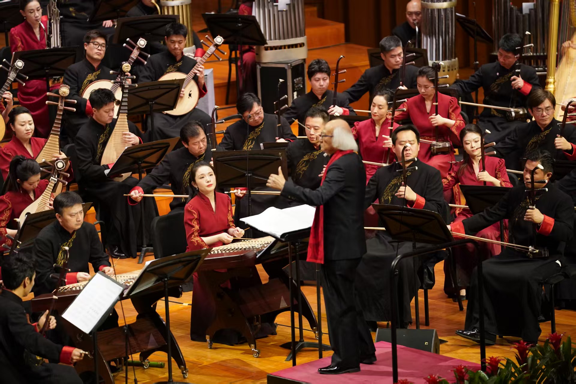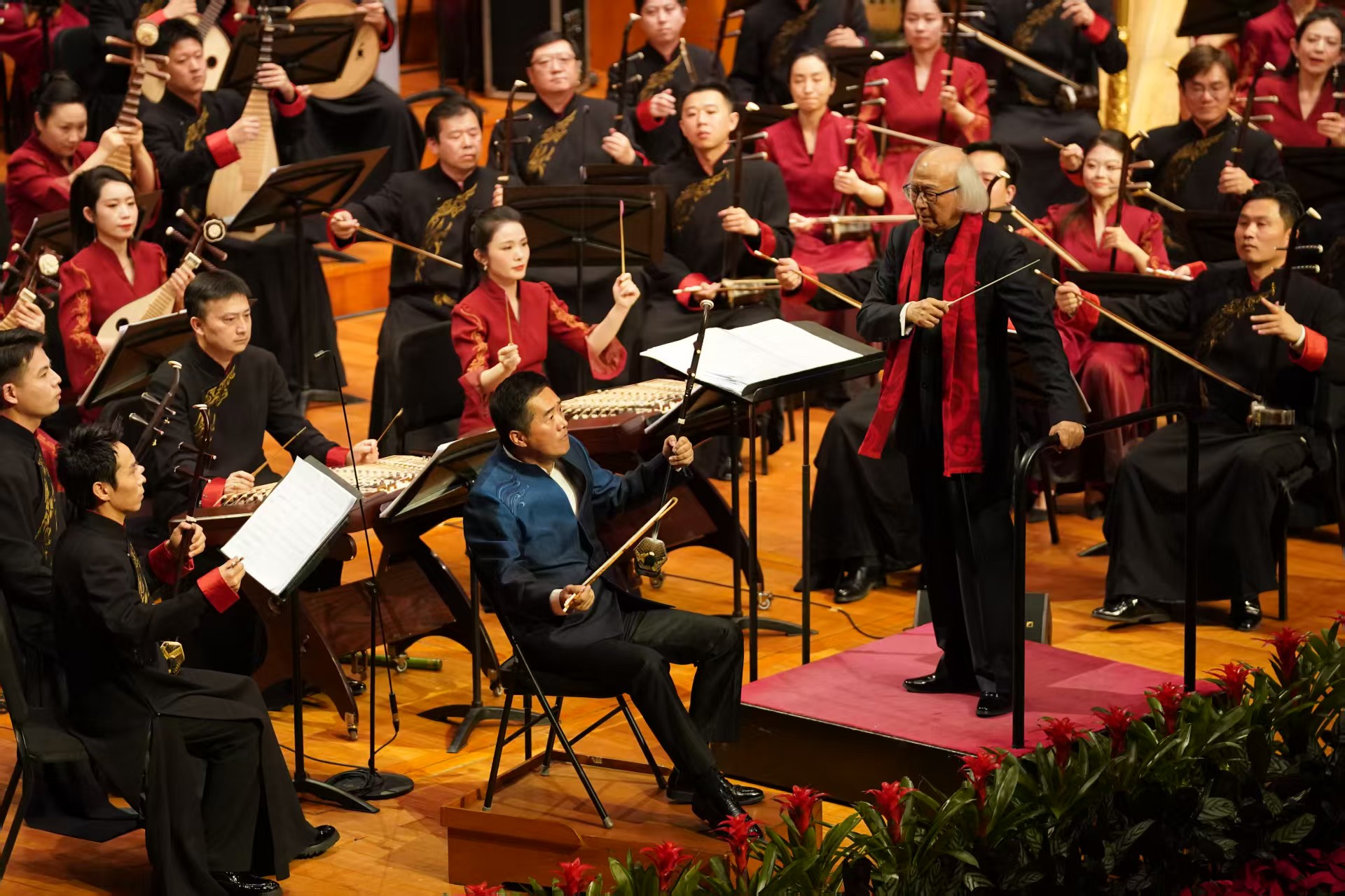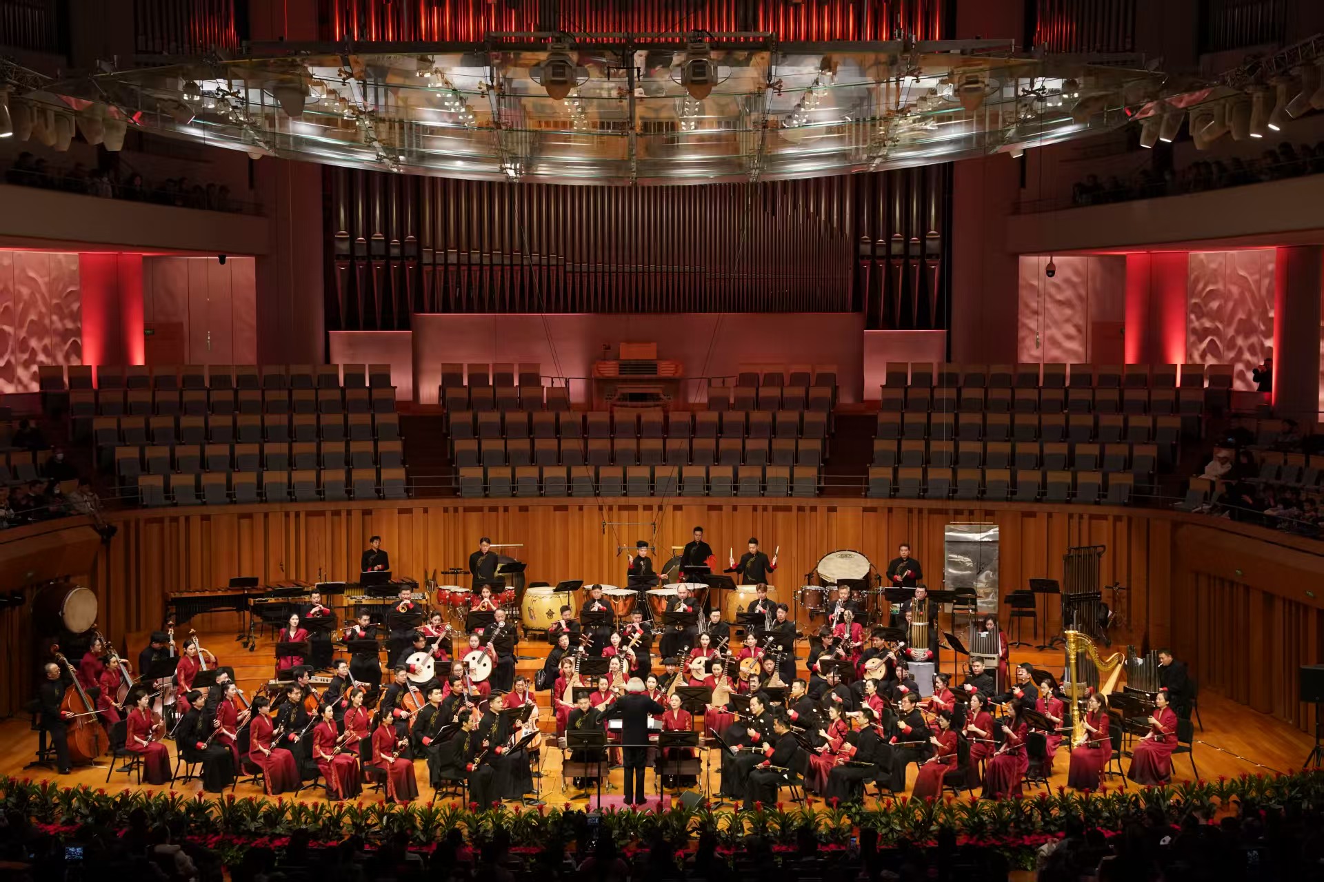 在中央民族乐团桂冠指挥陈燮阳的执棒下,热闹喧腾的民族管弦乐《醒狮起舞》率先奏响。乐曲开篇,锣鼓齐鸣,弦乐奔腾,瞬间将观众带入岭南大地欢庆佳节的场景之中。整场音乐会洋溢着浓烈的节日气氛,《醒狮起舞》《元宵·观灯》《中国节·春节》等大型民族管弦乐作品,勾勒出中国人心中最温暖的年节图景,也集中呈现了民族管弦乐百年来取得的辉煌成就。