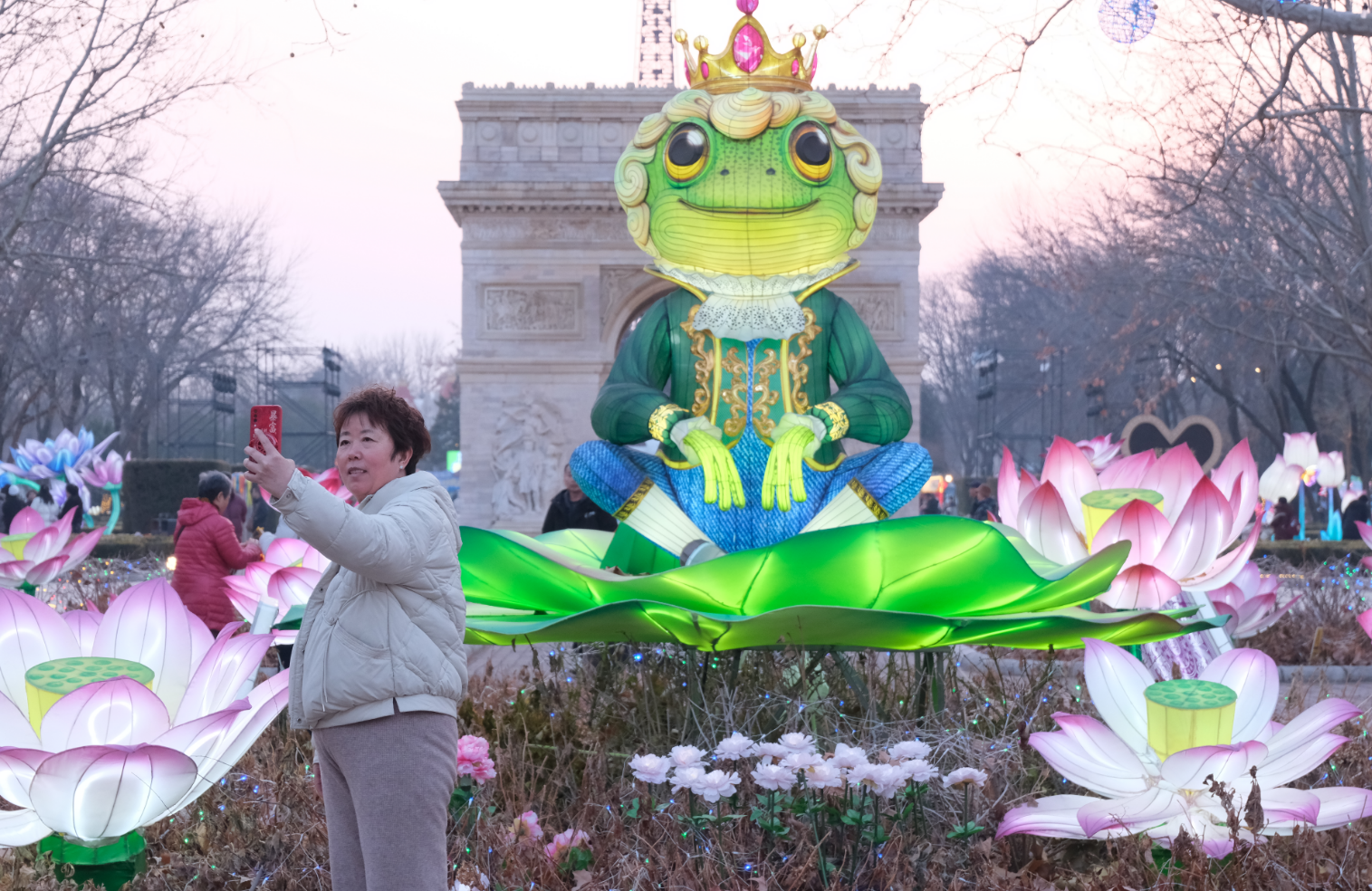 正月十五傍晚,天色渐暗,位于丰台区的世界公园渐渐热闹起来。2026年京彩新春彩灯嘉年华在这里举行,万盏彩灯同时点亮,将这座微缩景观公园装点成一个流光溢彩的光影世界。