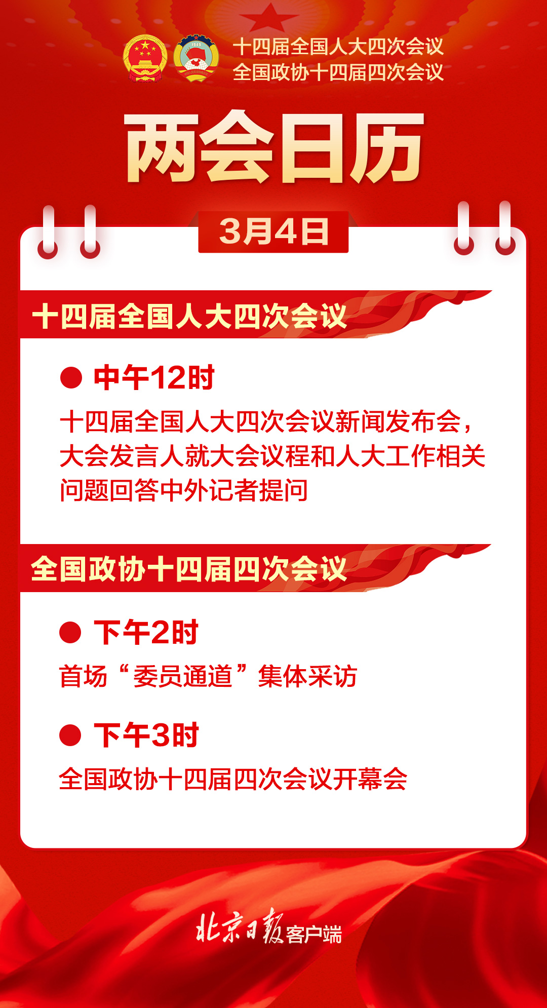 两会日历|全国政协十四届四次会议下午3时开幕