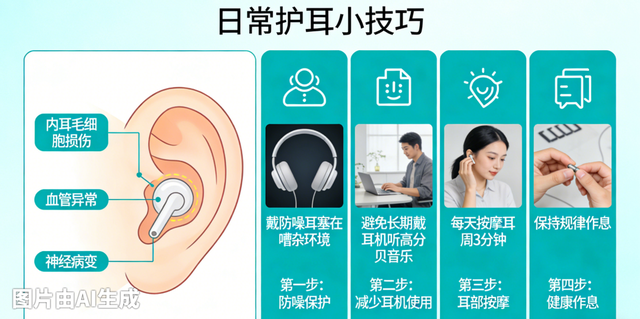 ①远离噪音:避免长时间待在噪音环境中,戴耳机时控制音量(60-60 原则:不超过最大音量的60%,每次佩戴时间不超过60分钟),避免睡前戴耳机睡觉。