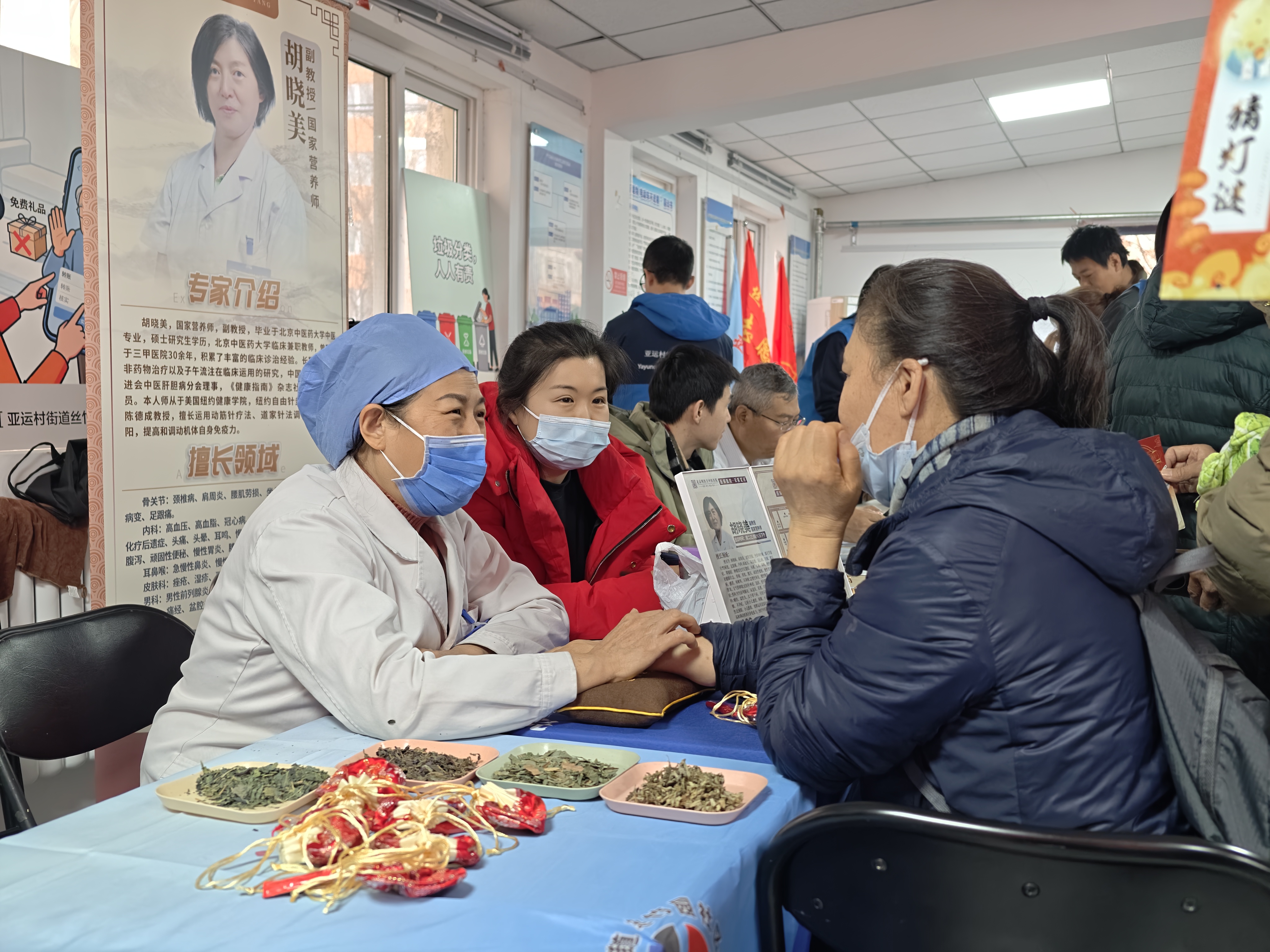 活动现场人头攒动,社区联动亚运村街道金融服务矩阵团队长北京银行北辰路支行、航空总医院吴大观志愿服务队等多方力量,搭建起一站式便民服务平台,志愿者各显身手,将贴心服务送到居民心坎上。